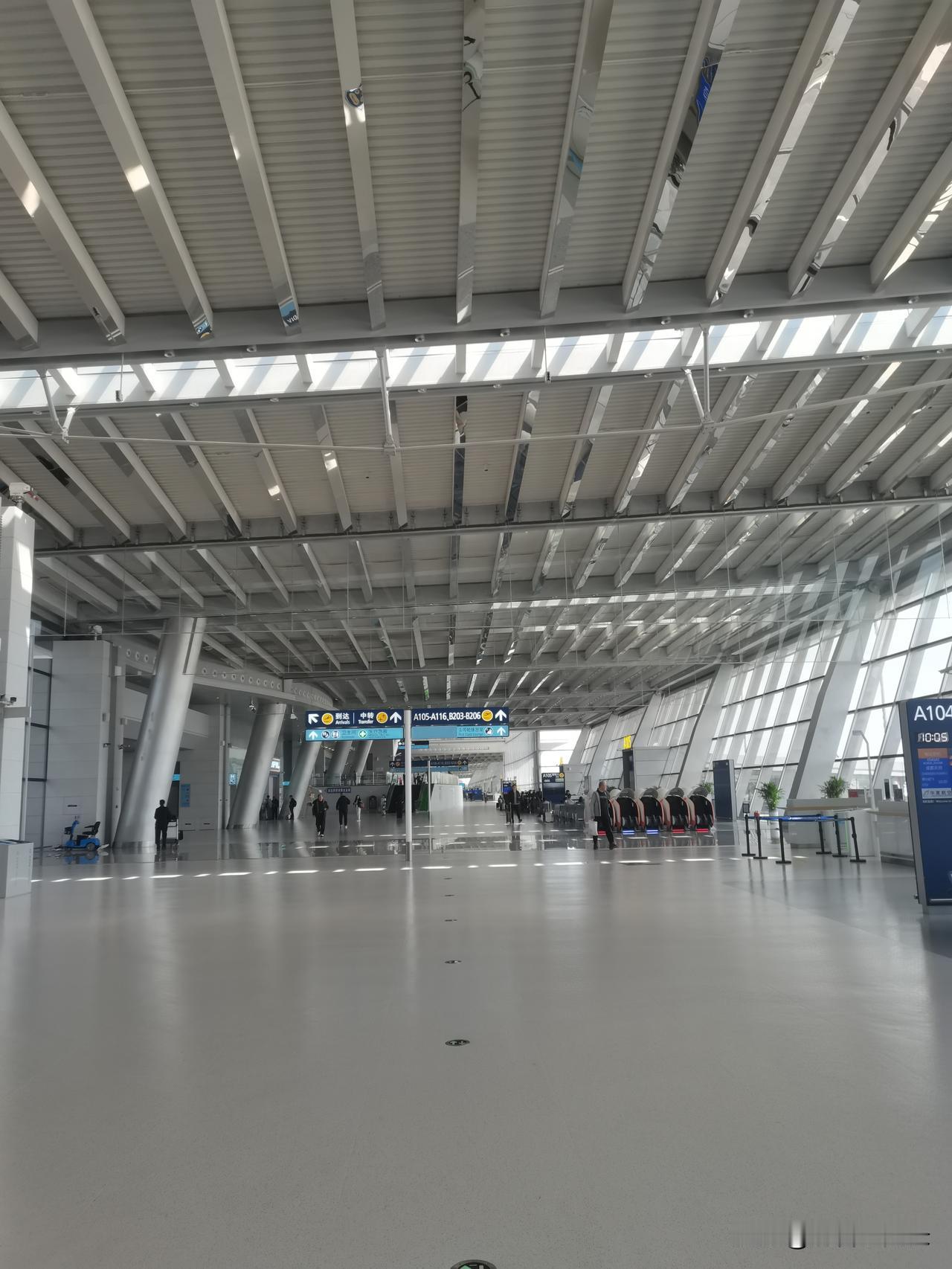 临沂启阳国际机场T2航站楼,第一次从这个新航站楼坐飞机,候机楼比之前的大了不少,整个候机楼宽敞整洁,干净明亮,采光也特别好。而且新增了不少登机廊桥。跟之前的航站楼相比,一下子高大上了不少。新航站楼的投入使用,也大大提升了临沂的城市形象。