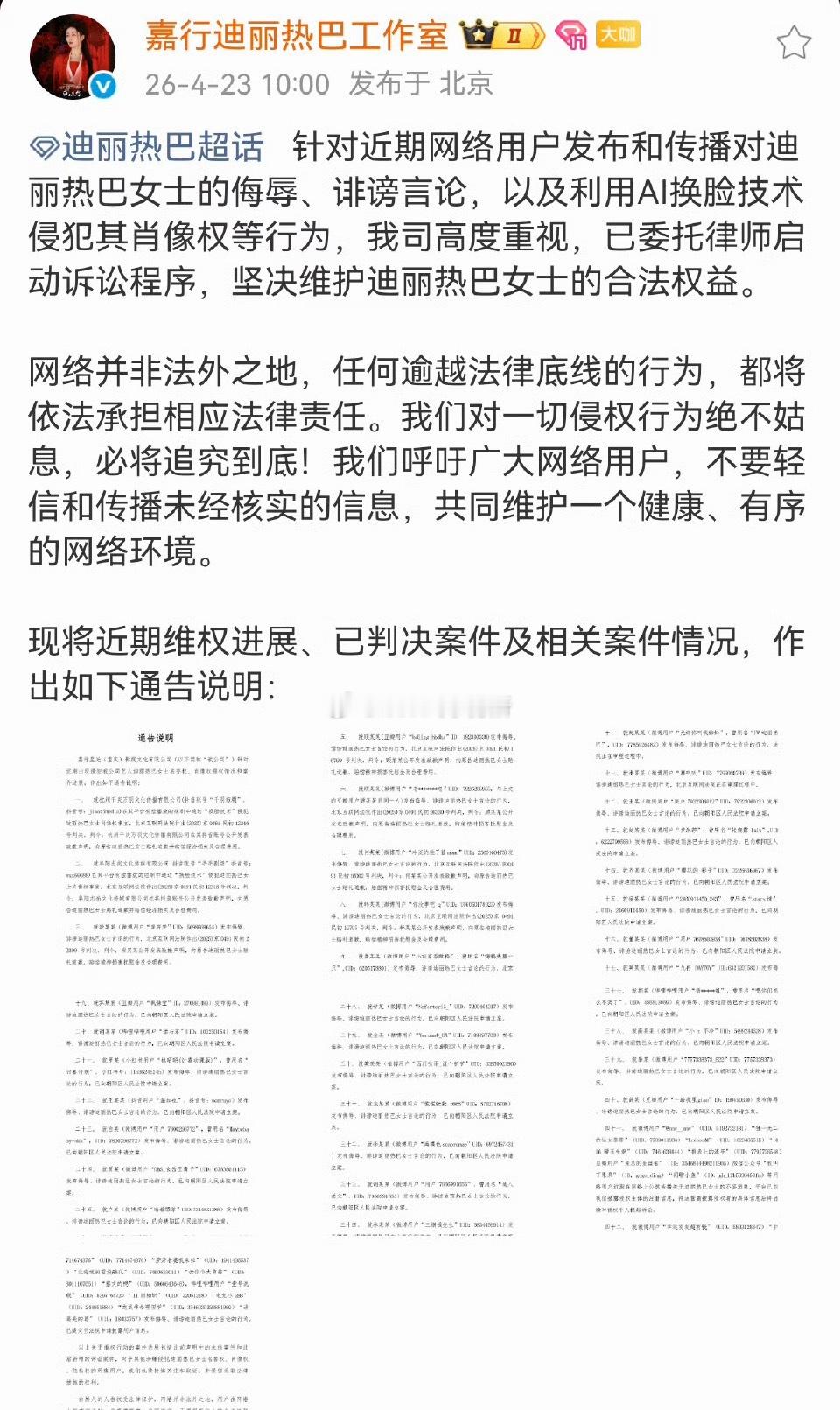 迪丽热巴方发布告嘿名单 这次力度好大 看看有没有熟悉的人