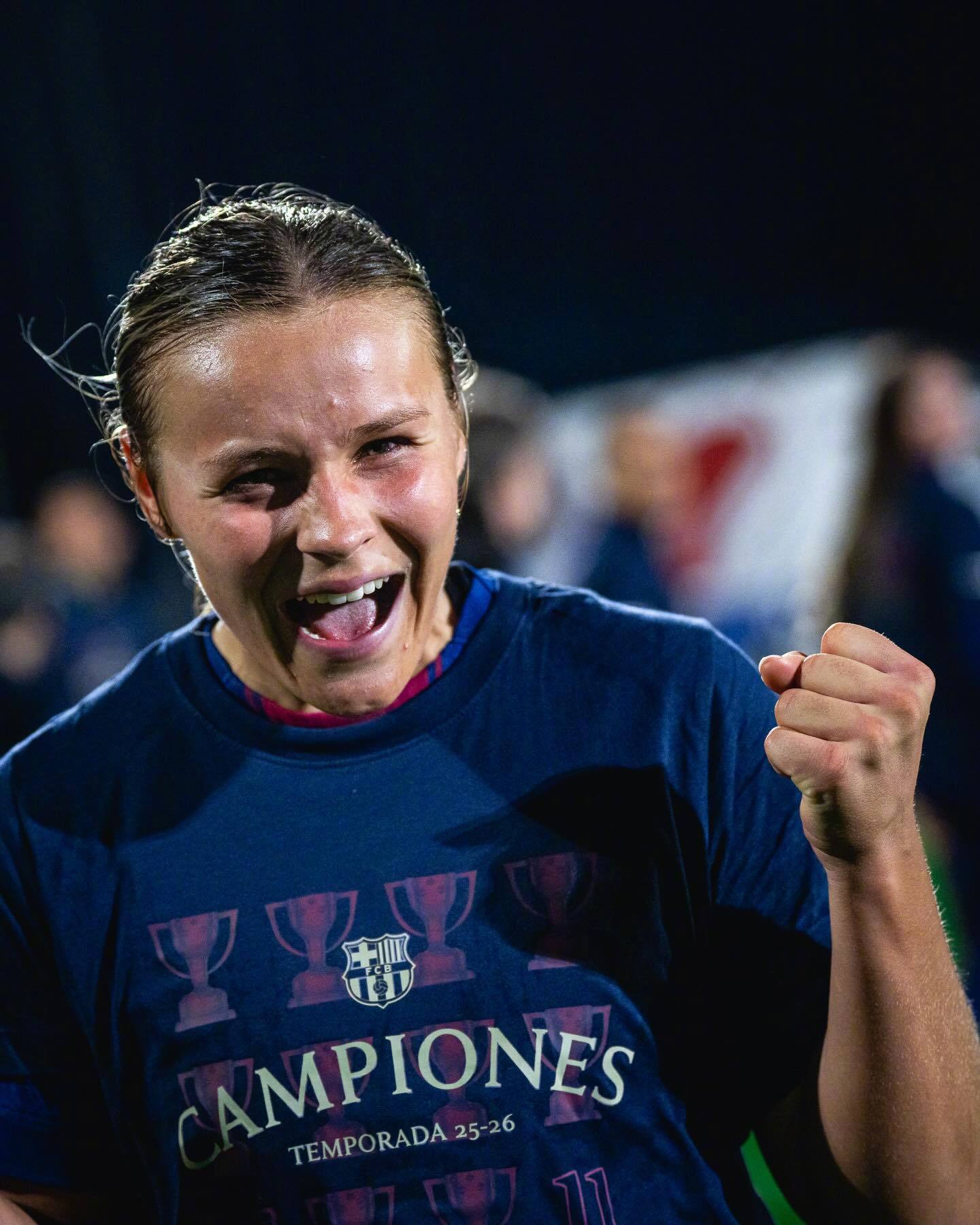 红蓝倩影 💜队史第十一做冠军奖杯,欧洲女足联赛第二长连贯冠纪录,第六次在进球过