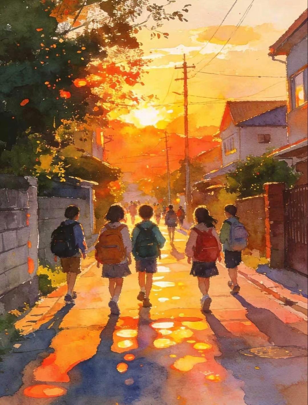 被岁月珍藏的瞬间✨ 旧时光,是一束慢下来的暖光。 夕阳把放学的小路染成橘子汽水色