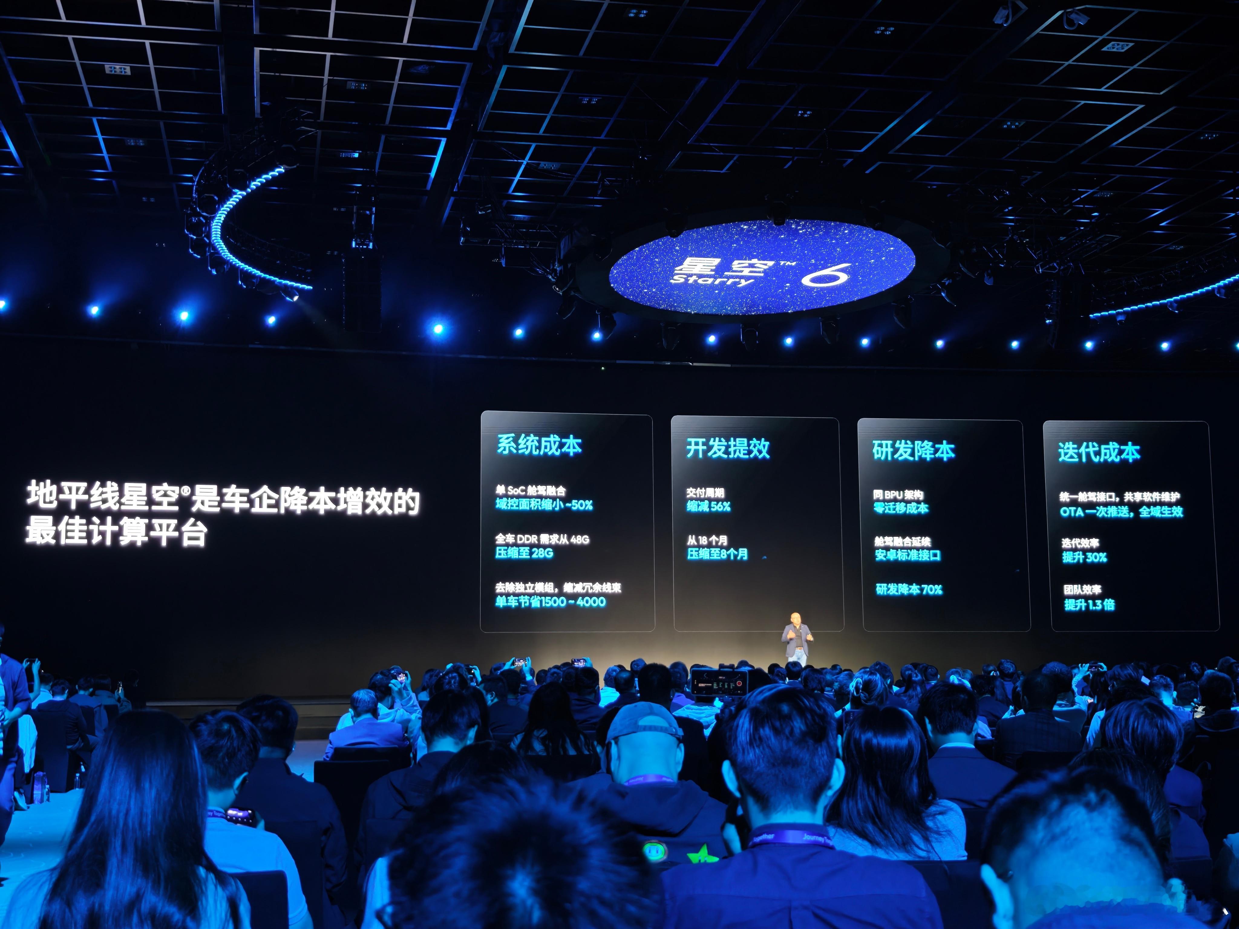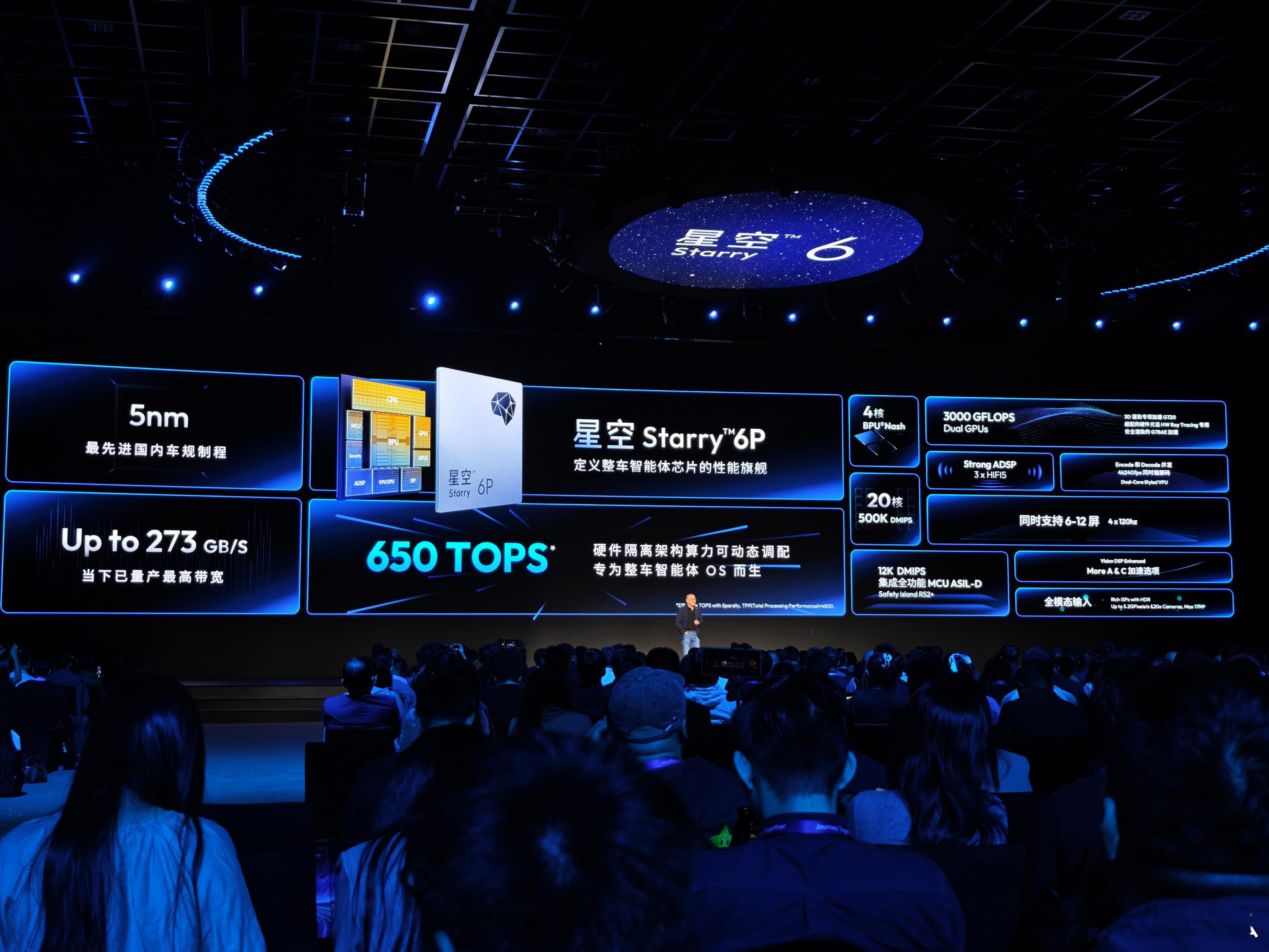 地平线星空®最大的能力就是将原本传统智能驾驶与智能座舱这两套系统分立的架构,整合在一起。基于5nm车规制程,星空6P芯片的BPU算力达到650 TOPS,可以同时支持座舱数字AI及高阶智能辅助驾驶大模型的部署。这样整车计算将从分离域控进入到中央计算,空间占用缩小50%,单车综合成本降低1500至4000元,研发交付周期从18个月缩短至8个月,舱驾一体软硬件交付时间也可缩短56%。