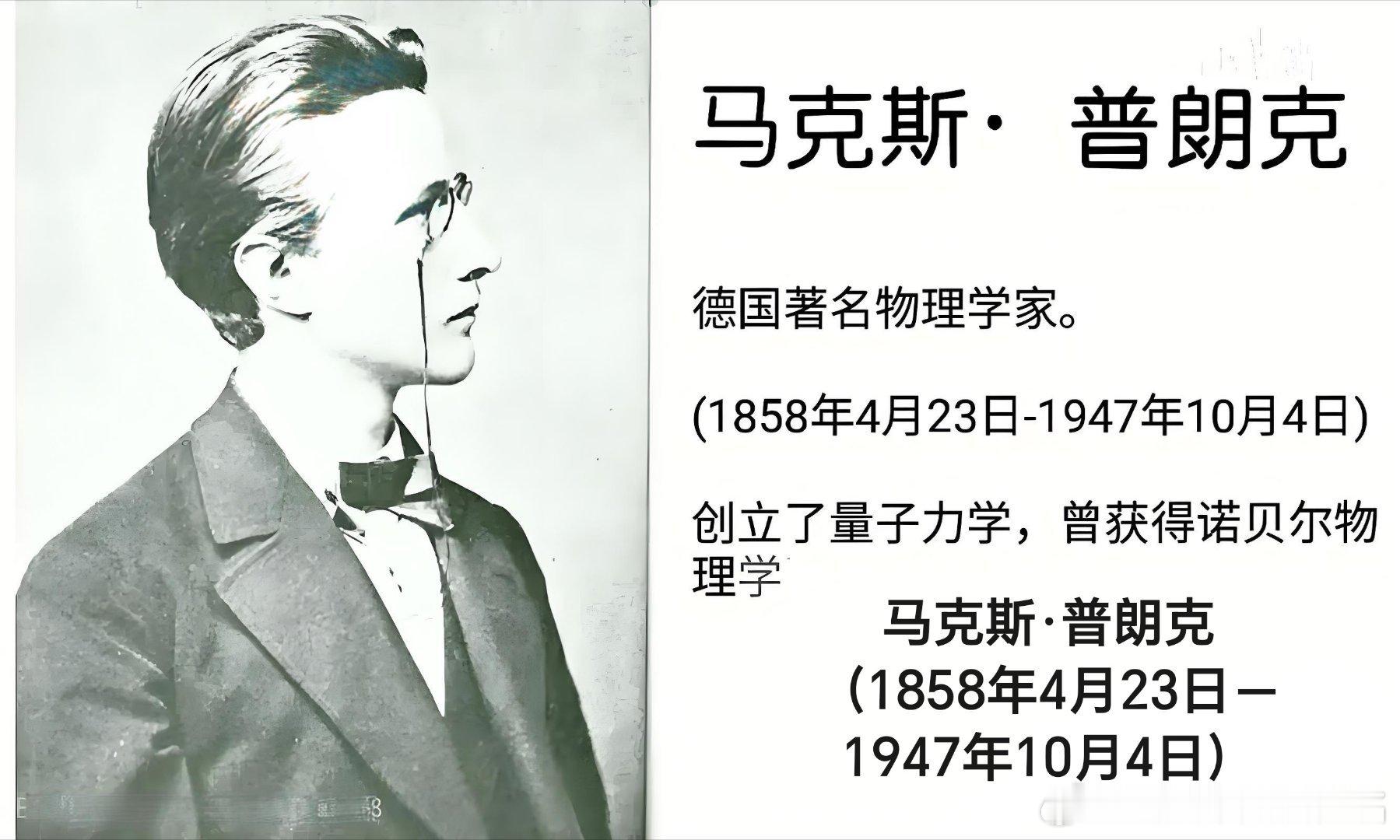 马克斯·普朗克(1858年4月23日-1947年10月4日),德国物理学家,量子力学的创始人,二十世纪最重要的物理学家之一,因发现能量量子而对物理学的进展做出了重要贡献,并在1918年获得诺贝尔物理学奖。作为一个理论物理学家,普朗克最大的贡献是首先提出了量子论。这个理论彻底改变人类对原子与次原子的认识,正如爱因斯坦的相对论改变人类对时间和空间的认识,这两个理论一起构成了20世纪物理学的基础。