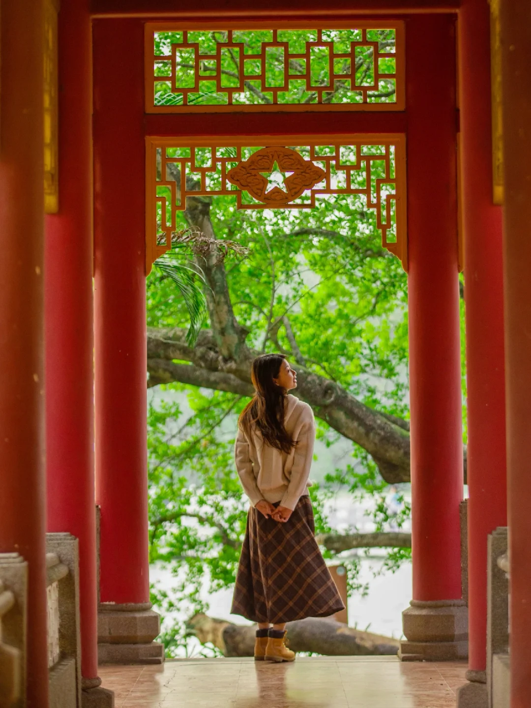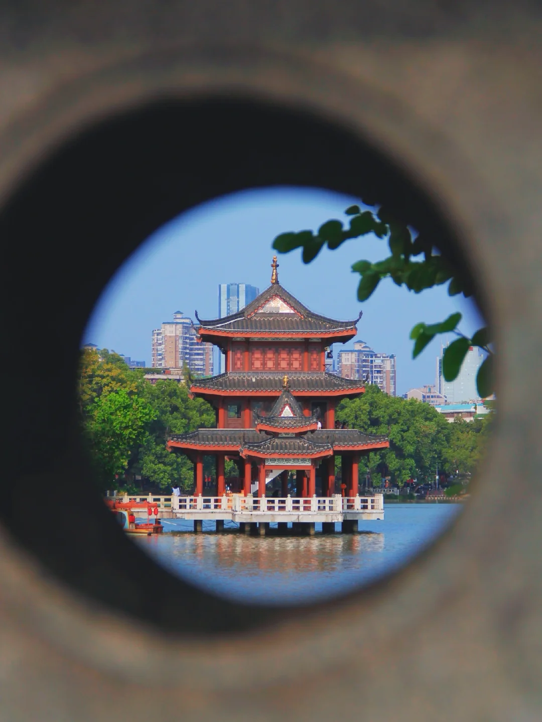 5️⃣西湖:具体位置在烟霞桥,桥头有个石柱,透过石柱的孔往外拍