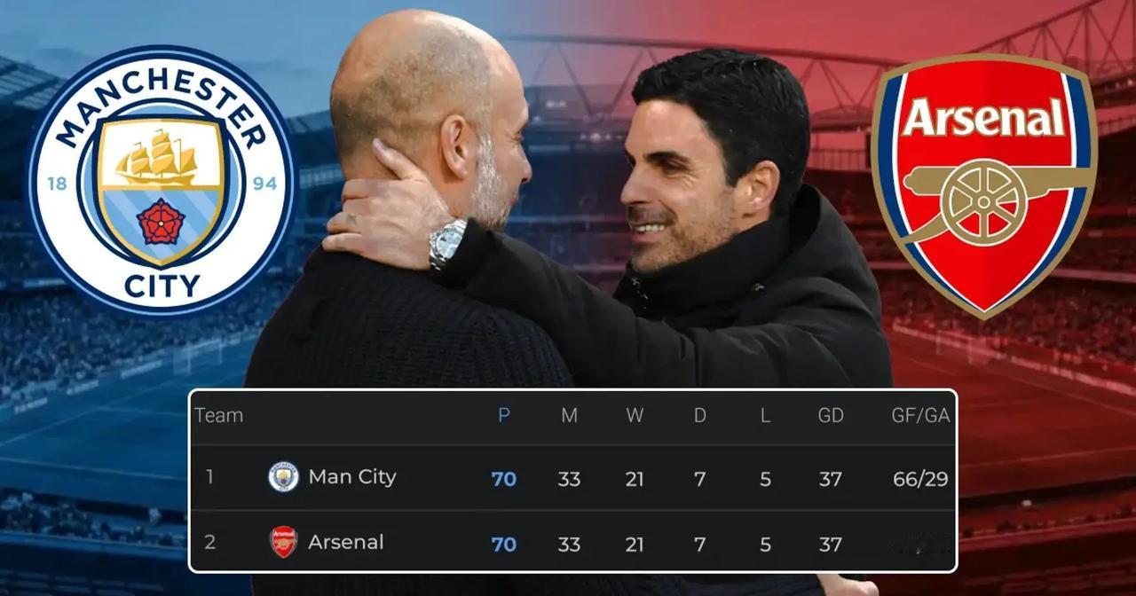 活久见!英超34年神迹要来了!曼城阿森纳争冠卷疯了,冠军就差3个球?