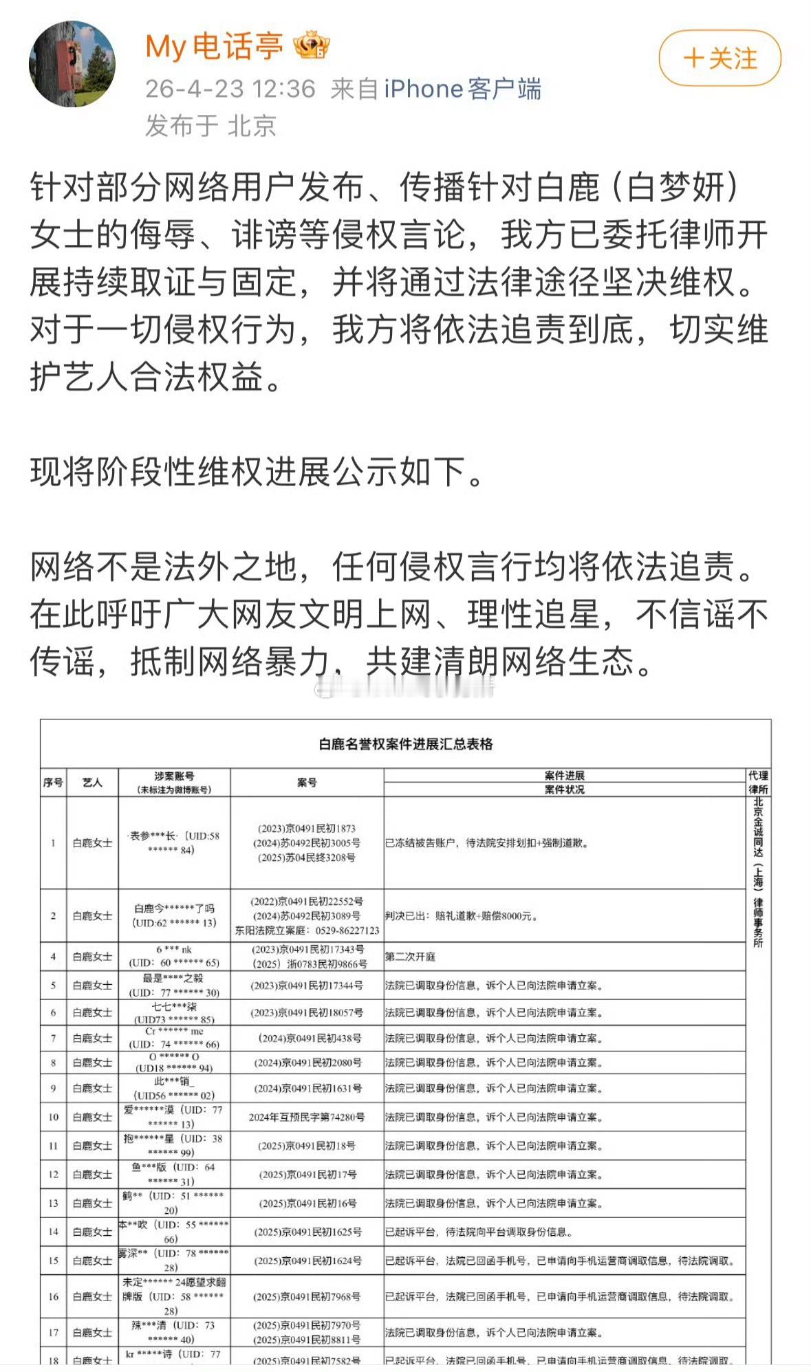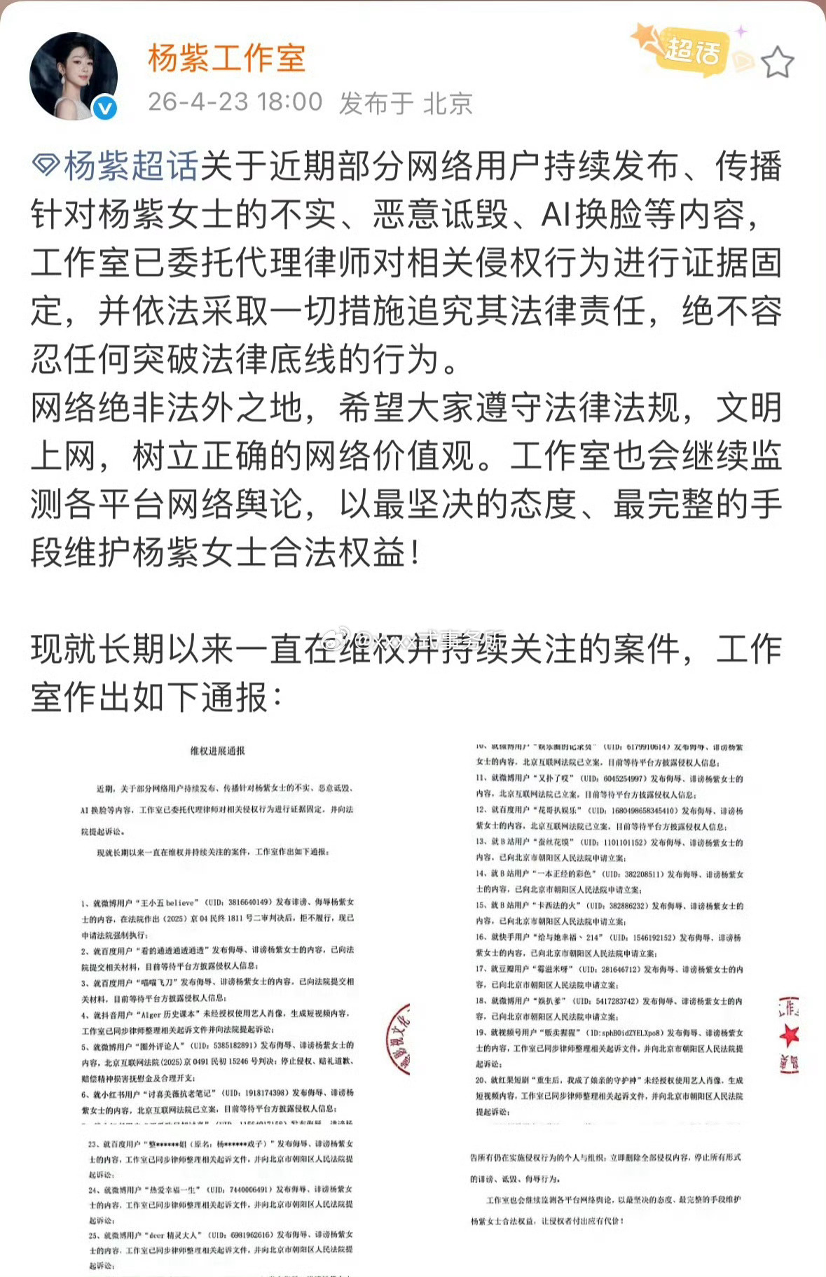 今天迪丽热巴 杨紫 白鹿三家工作室先后发布了告黑进度