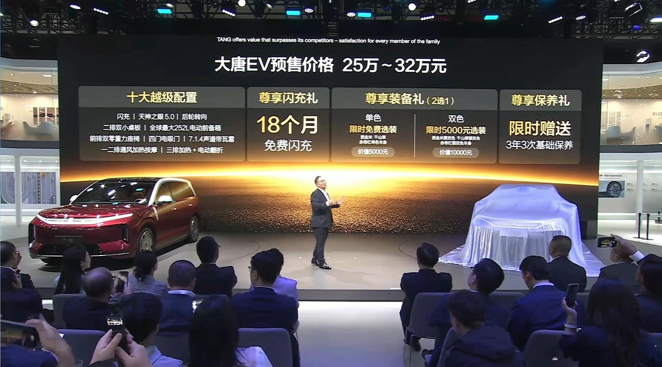 我期待已久比亚迪「大唐」终于公布预售价了:25-32 万这个价格我觉得已经很亲民了来看下它的配置闪充天神之眼5.0后轮转向二排双小桌板 全球最大252L电动前备箱前排双零重力座椅四门电吸门|7.1.4声道帝瓦雷一二排通风加热按摩三排加热+电动嗣预售期间下单还送 18 个免费闪充限时赠送 3 年 3 次基础保养不知道大家有没有心动,反正我是心动了对于有 3 个宝宝的奶爸这种大型的 七座SUV太刚需了