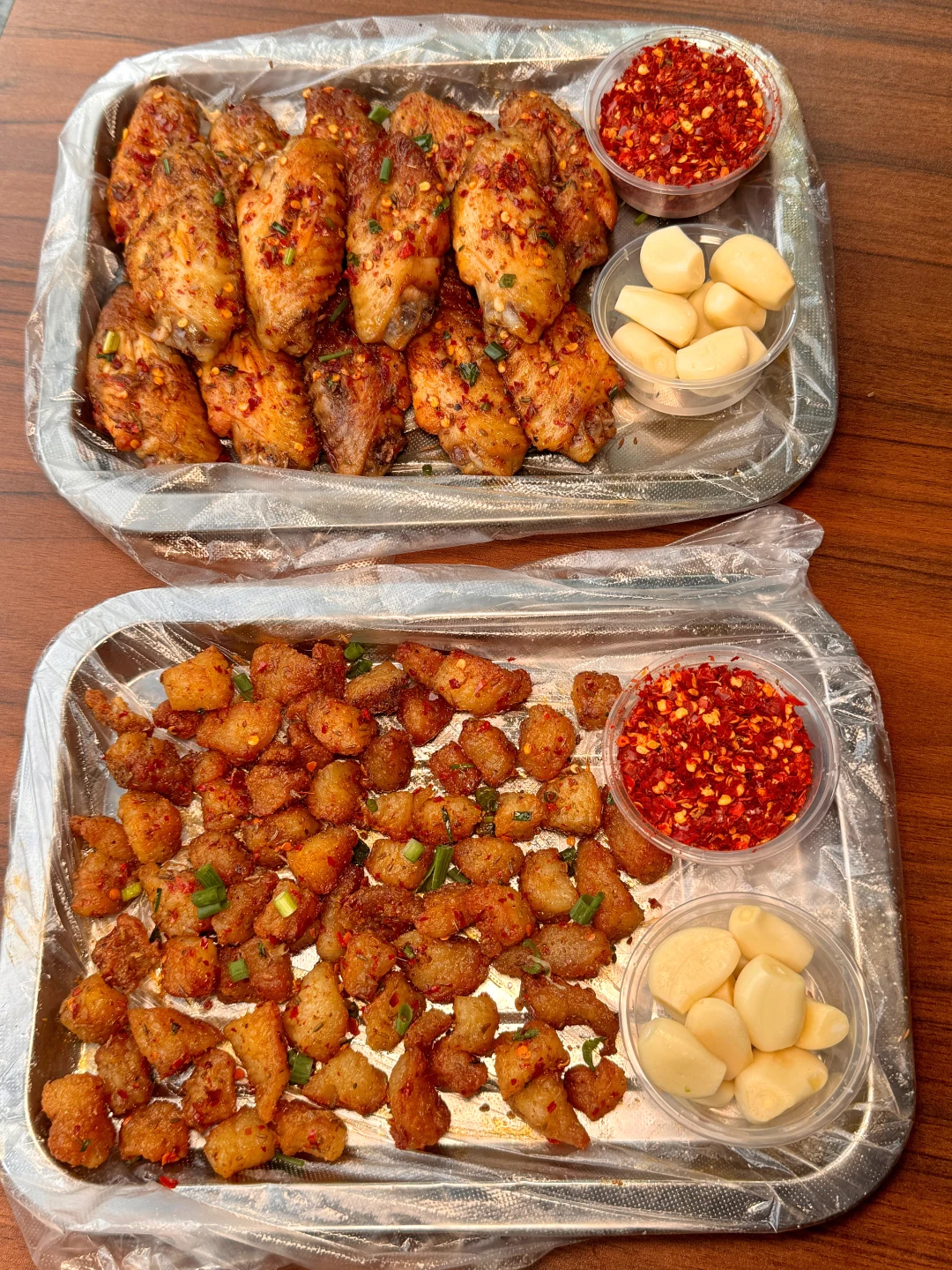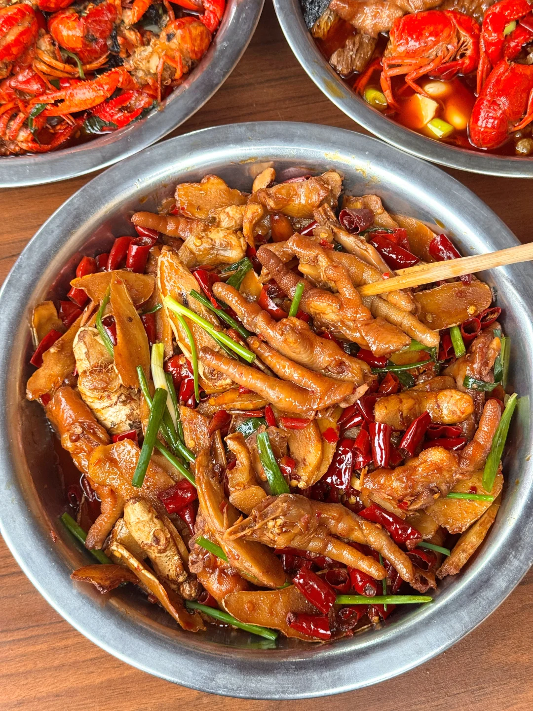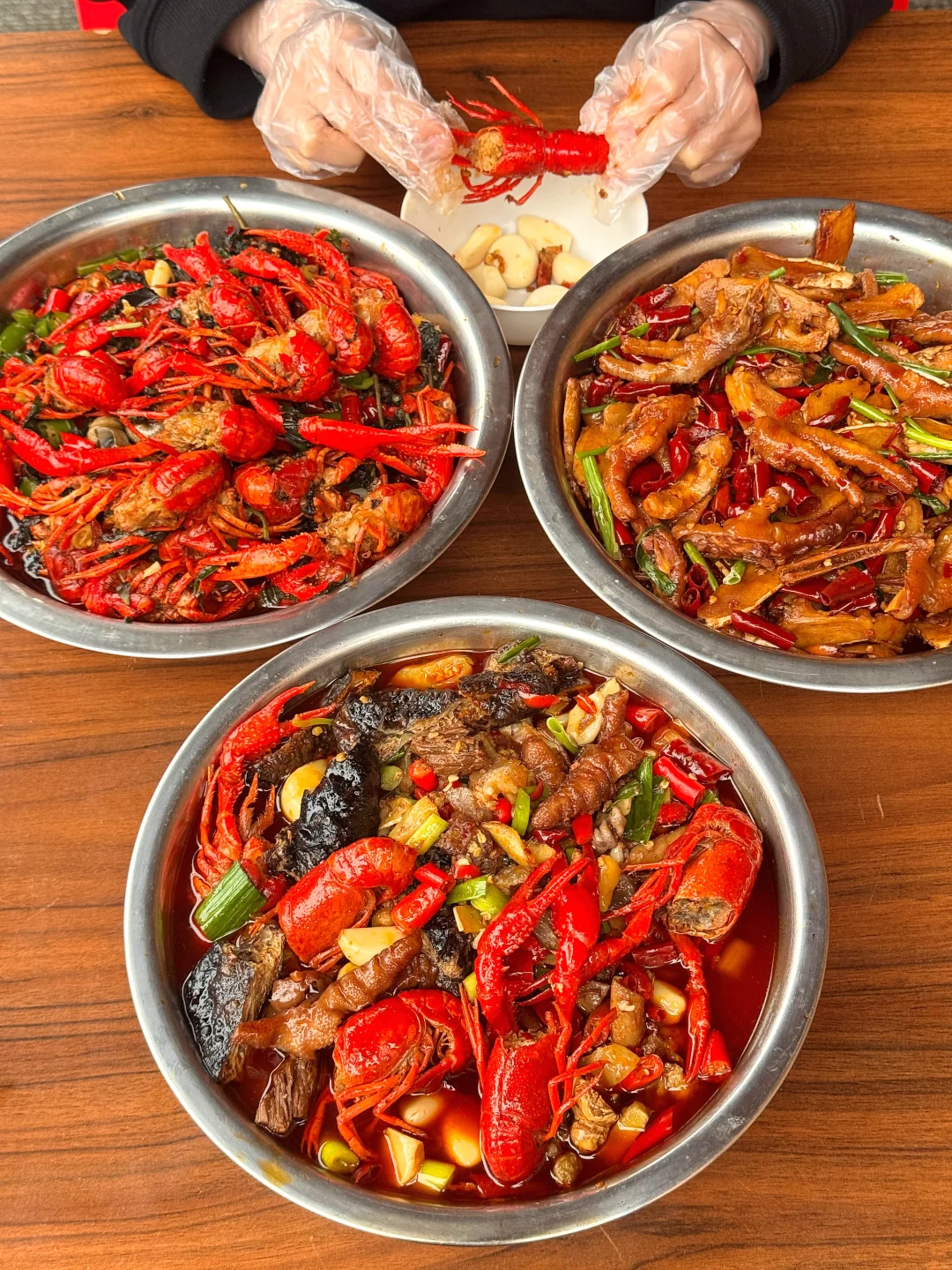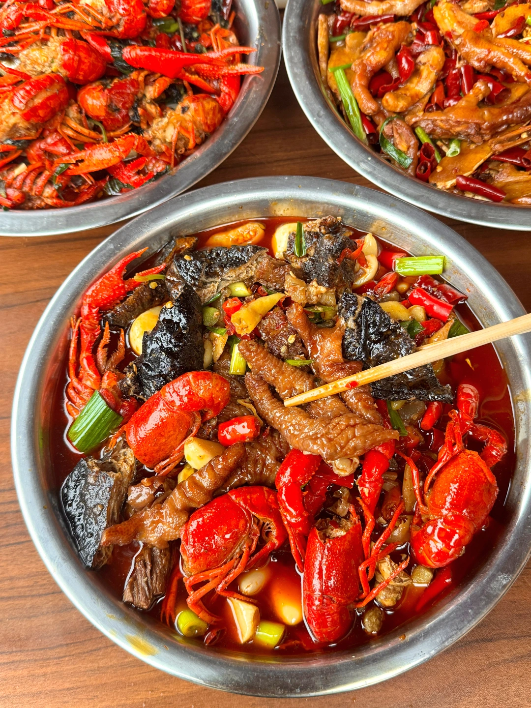 烧烤炭烤的好香!推荐:烤鸡翅、烤牛油、烤牛肉筋、烤鱼片…吃了一手又多加了两手!小龙虾🦞每桌都会点,虾个头大,非常地道正宗的老岳阳口味!