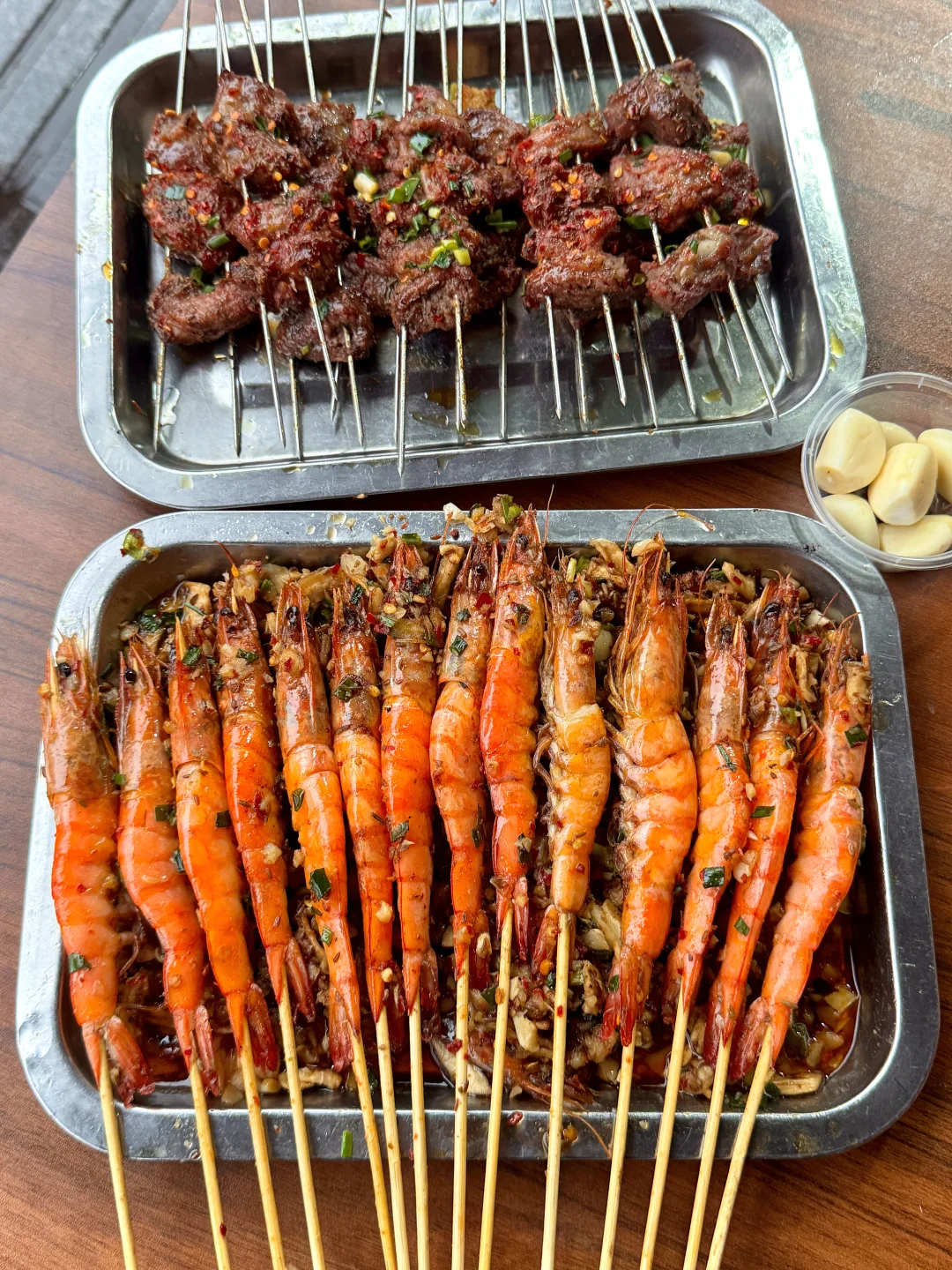 感谢本地人带路才找到的夜宵烧烤老店!!!非网红,靠着口碑🔥的,生意jujuju好,凌晨都是座无虚席,附近居民都夸好吃,嗦螺锅,小龙虾,烧烤,甜品都吃了真心好吃!