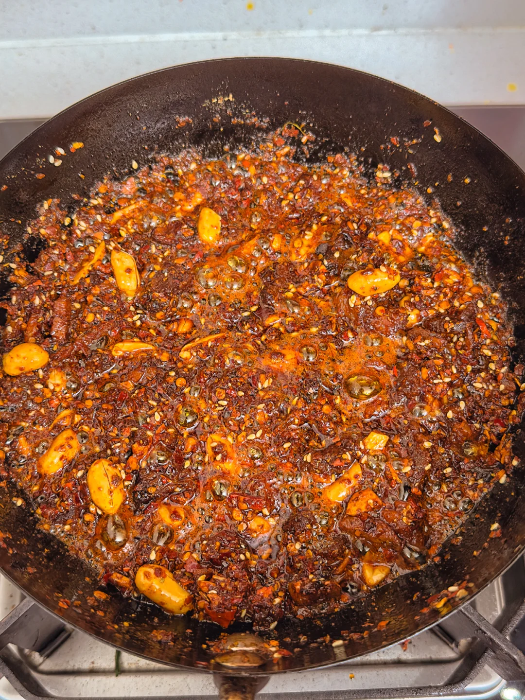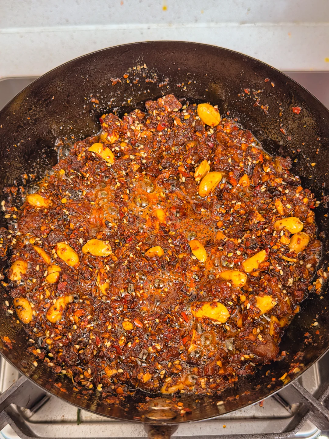 4、一定要关火再放辣椒面、利用余温去激发辣椒,避免糊掉变苦