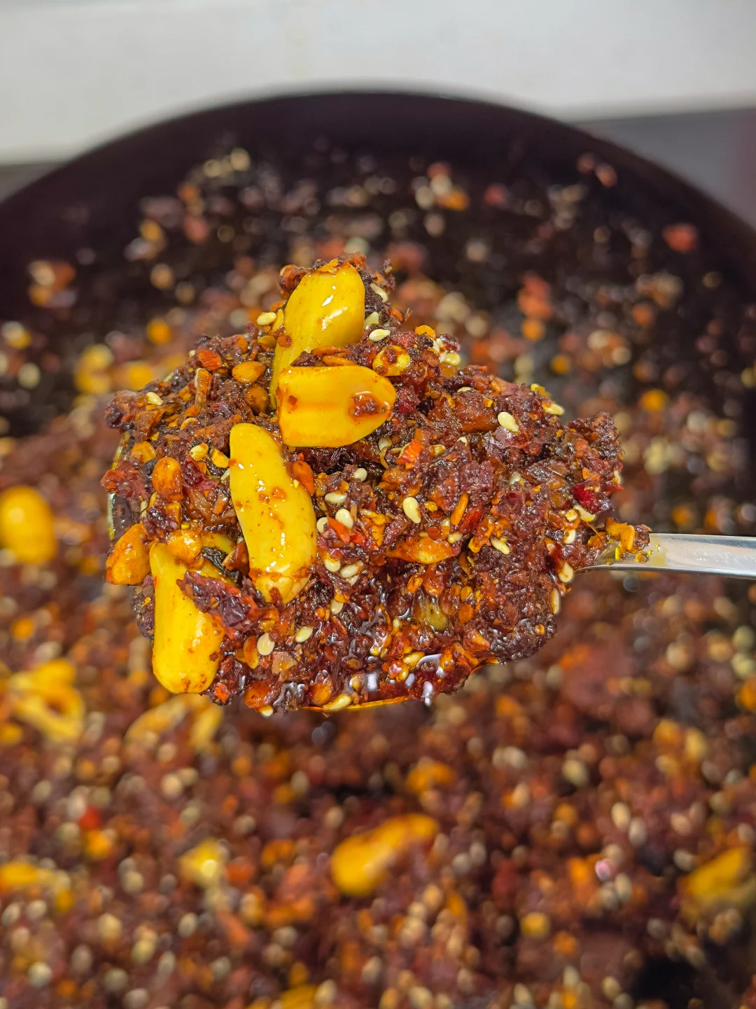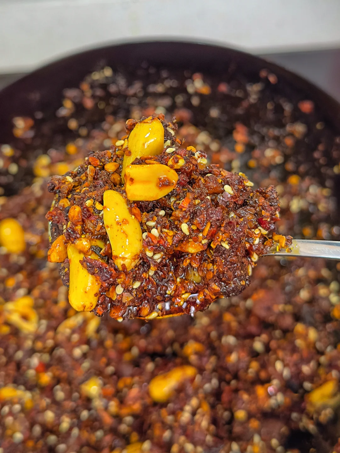 这种腊肉油辣椒比普通的油辣椒味道更厚重、回味更长,有“烟熏+辣+油香”三层味道