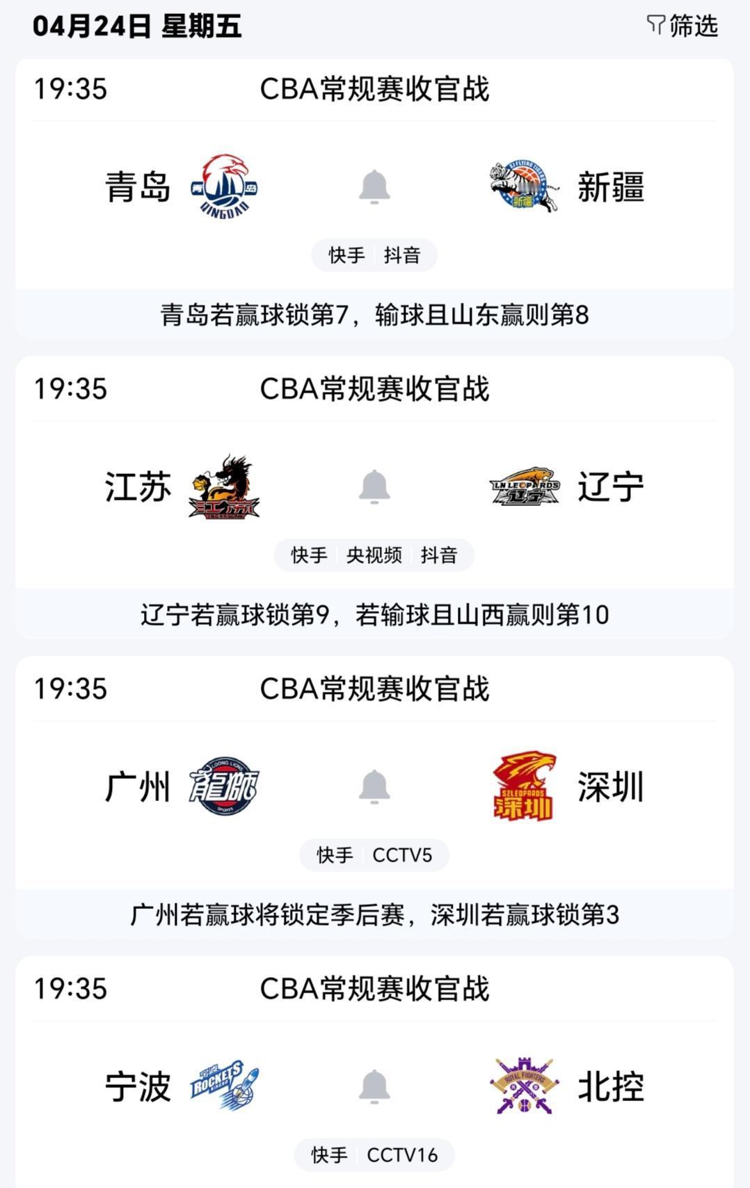 各支球队现在心里都有本账,赢了这场可能就能避开强敌,输了说不定就得提前碰上硬骨头,到时候谁是第一谁是第八,谁要和谁在季后赛首轮碰面,这些悬念都会揭晓。