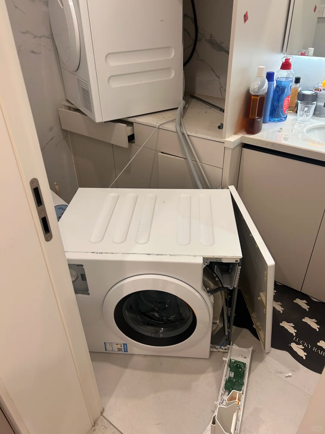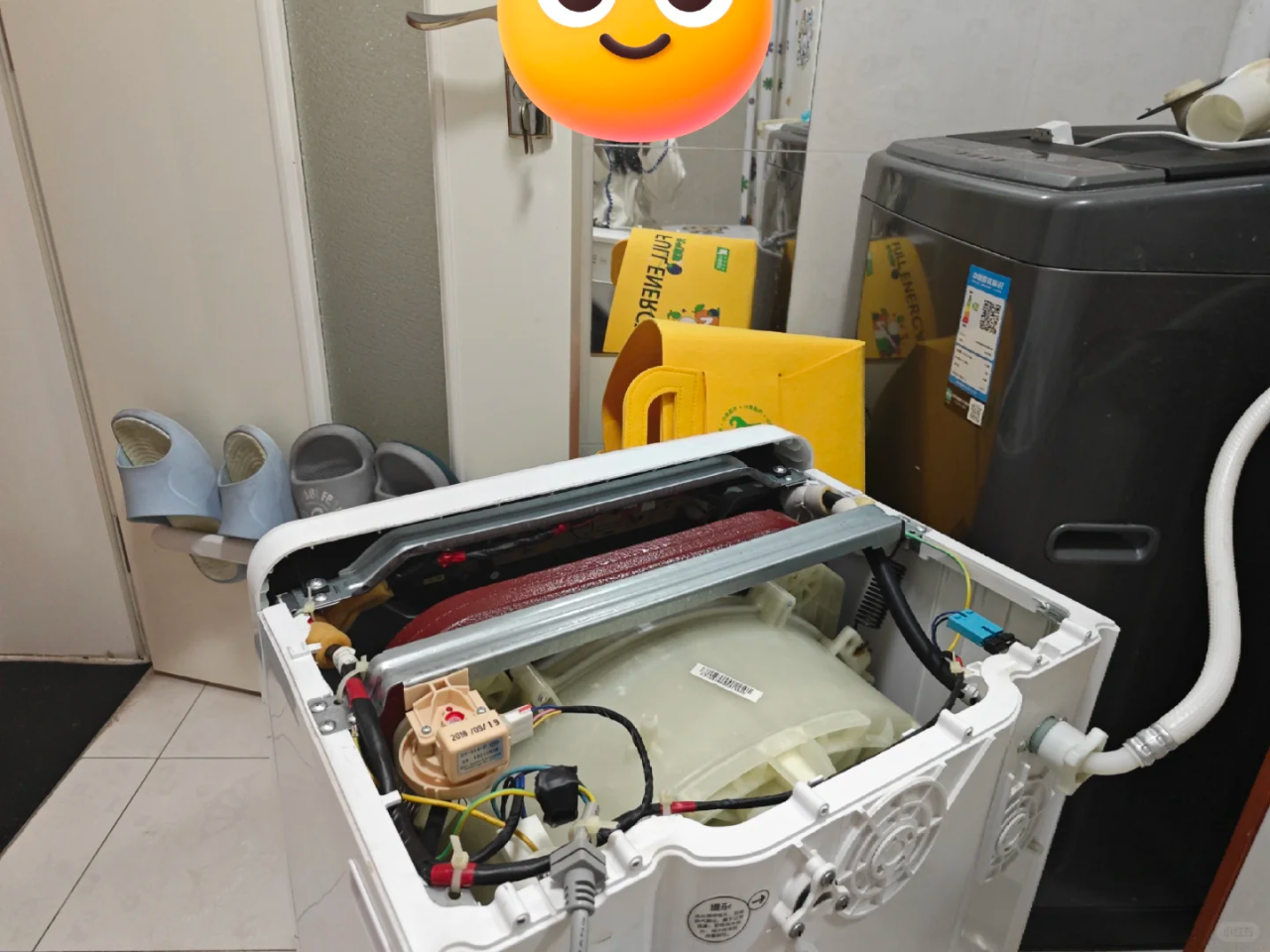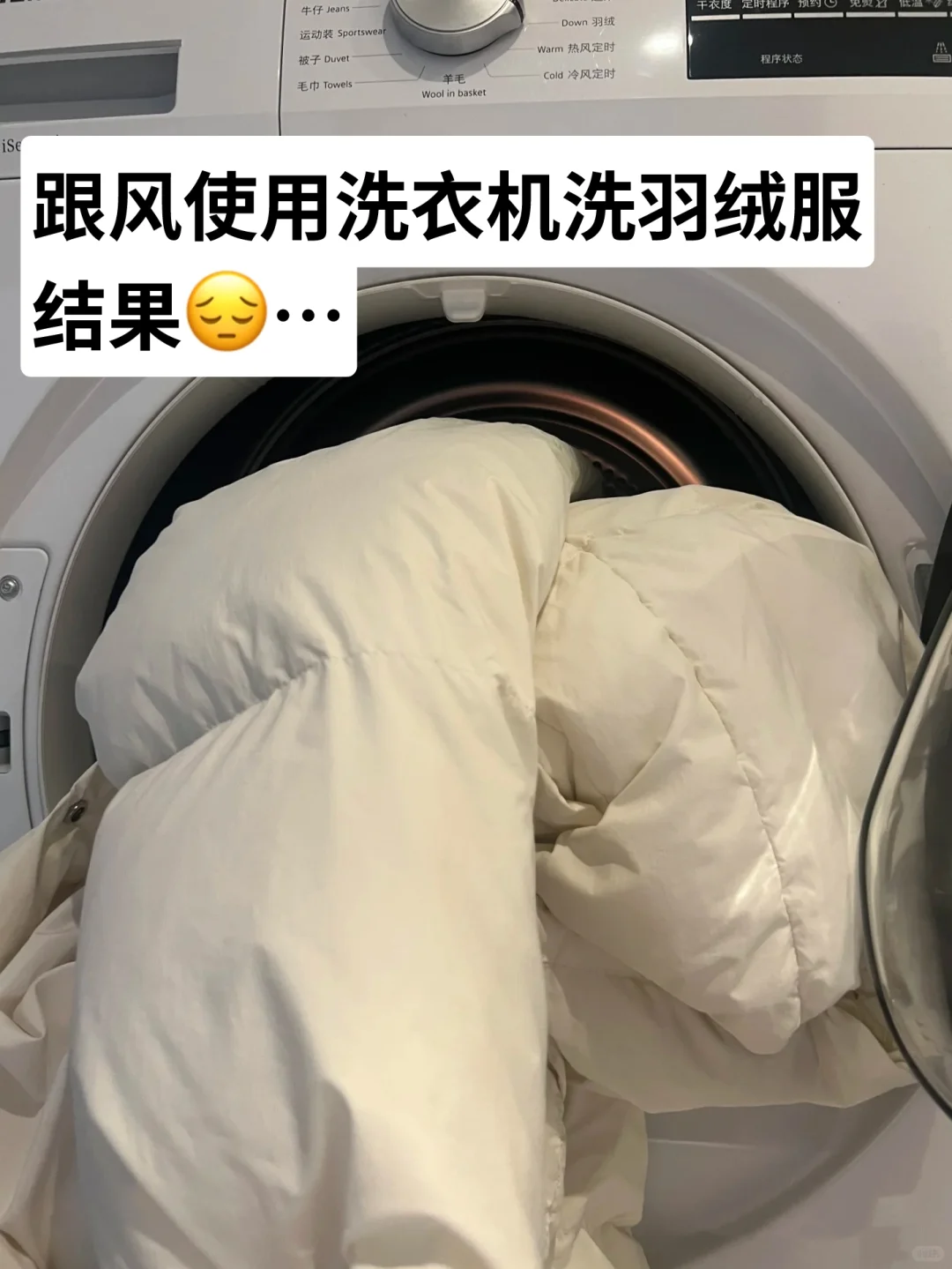 想着羽绒服又大又厚,手洗太累,直接放在洗衣机里清洁多轻松,结果洗衣机不愿意了。