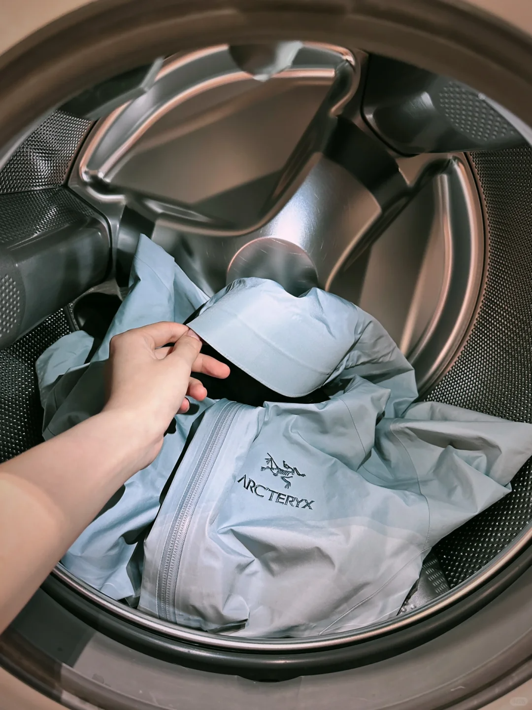 要知道洗衣机强大的压力就会把冲锋衣表布的防水涂层和里面的防水透气膜洗坏,进而使防水效果消失,后期修补也很麻烦。