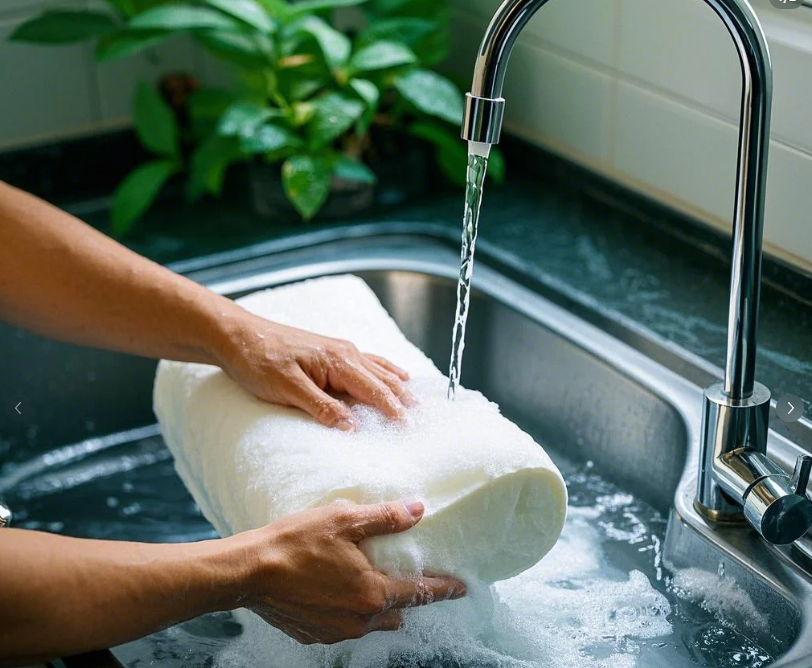而化纤级乳胶枕最好是用手洗,而且要使用流动的水来清洗,千万别放进洗衣机里。