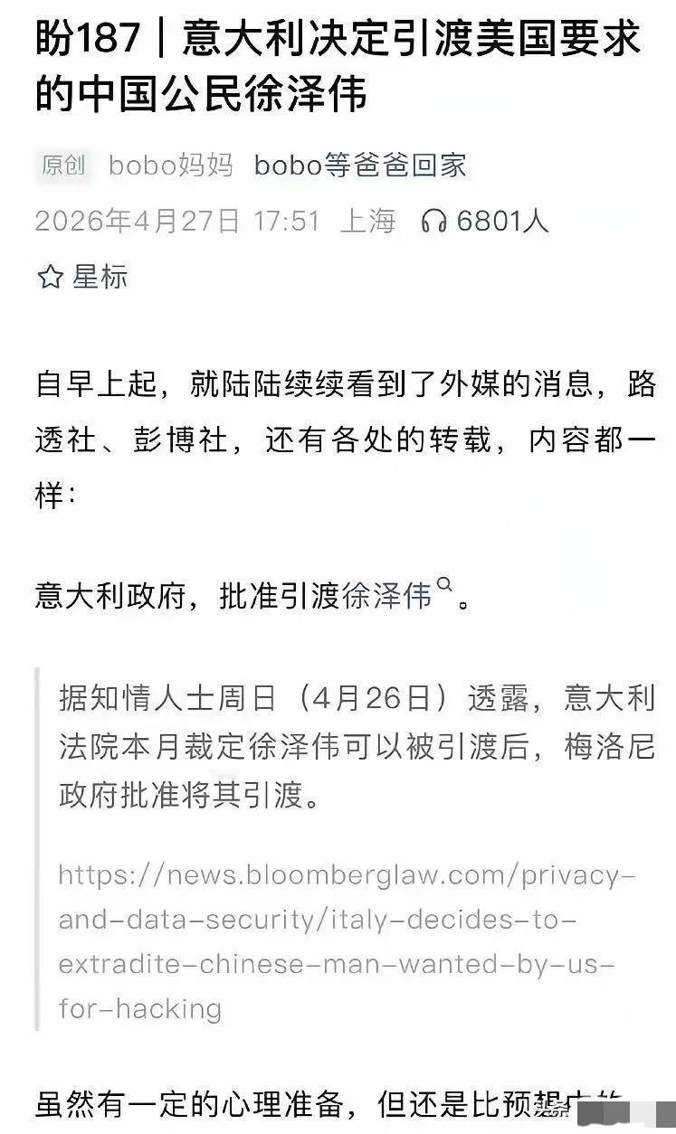 意大利悄悄完成引渡。