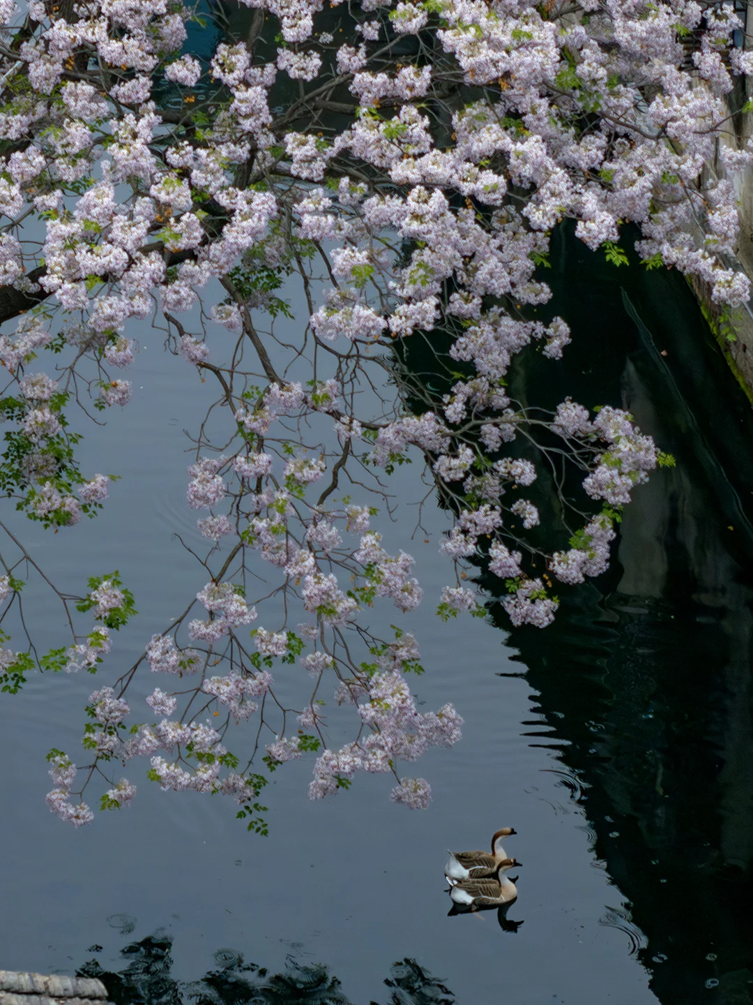 乌篷行过,水鸭曳着长痕,
