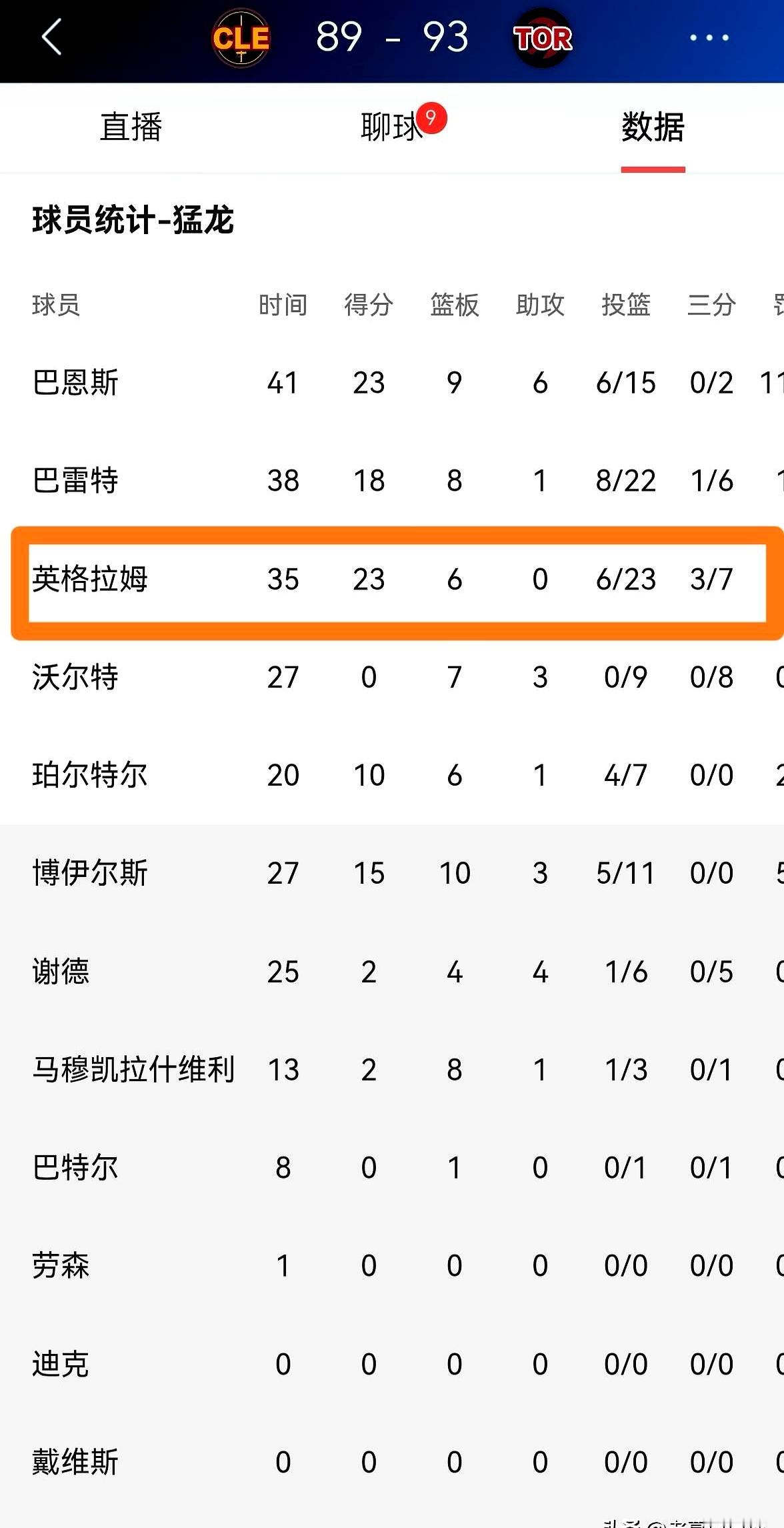 英格拉姆上半场铁到什么程度?10次出手就进1个。可他愣是靠着压哨三分和连续命中,把球队半场比分给拉了回来。