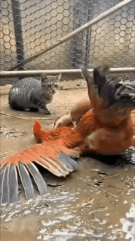 这只黄鼠狼偷鸡时,一口死死咬住鸡的脖子,任凭鸡拼命挣扎也绝不松口。此时,一只大灰猫却蹲在旁边冷眼旁观,任凭鸡拼命呼喊“猫哥哥,快救我”,它却无动于衷。要是被主人看到自己心爱的鸡被黄鼠狼偷吃,而猫却在一旁袖手旁观,主人还不得气个七窍生烟,宰了这猫吗?
