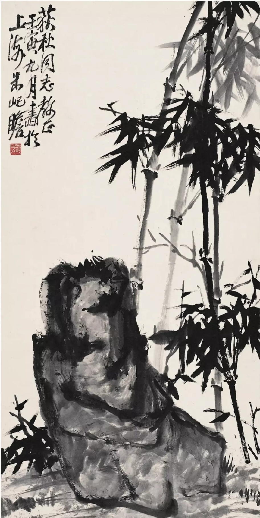 朱屺瞻画竹。朱屺瞻(1892—1996)江苏太仓人,中年曾学油画,后主攻中国画,中国美术家协会顾问。西泠印社社员。朱屺瞻画竹,随意生发,自由挥洒,真正做到了“整而不板,复而不乱”,“由法而化,雅韵自然”,很得笔墨情味。这就是中国风遇见艺术