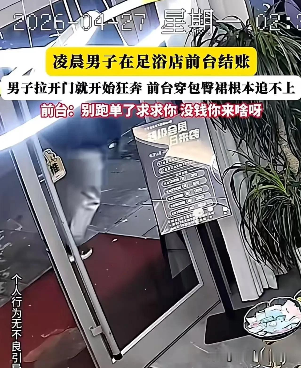 男子凌晨在足浴店按摩享受完,到前台假装结账,趁人不备直接拔腿逃单。