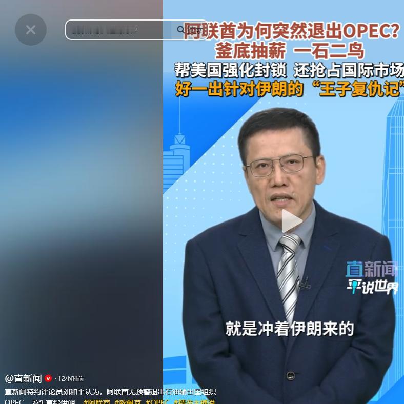 阿联酋突然退群 OPEC ,刘和平认为这是针对伊朗。当地时间 4 月 28 日,作为石油输出国组织第三大产油国,阿联酋通过官方通讯社 WAM 正式宣布,自 2026 年 5 月 1 日起退出 OPEC 及 "OPEC+" 机制,结束了其近 60 年的成员国身份。