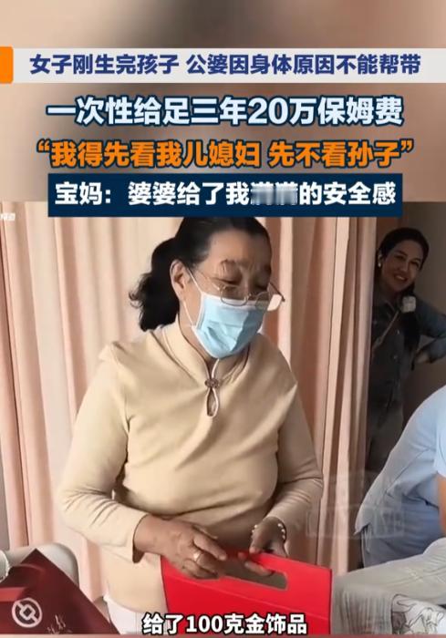 女子刚生完孩子 公婆因身体原因不能帮带,一次性给足三年20万保姆费“我得先看我儿媳妇 先不看孙子”宝妈:婆婆给了我满满的安全感。婆媳