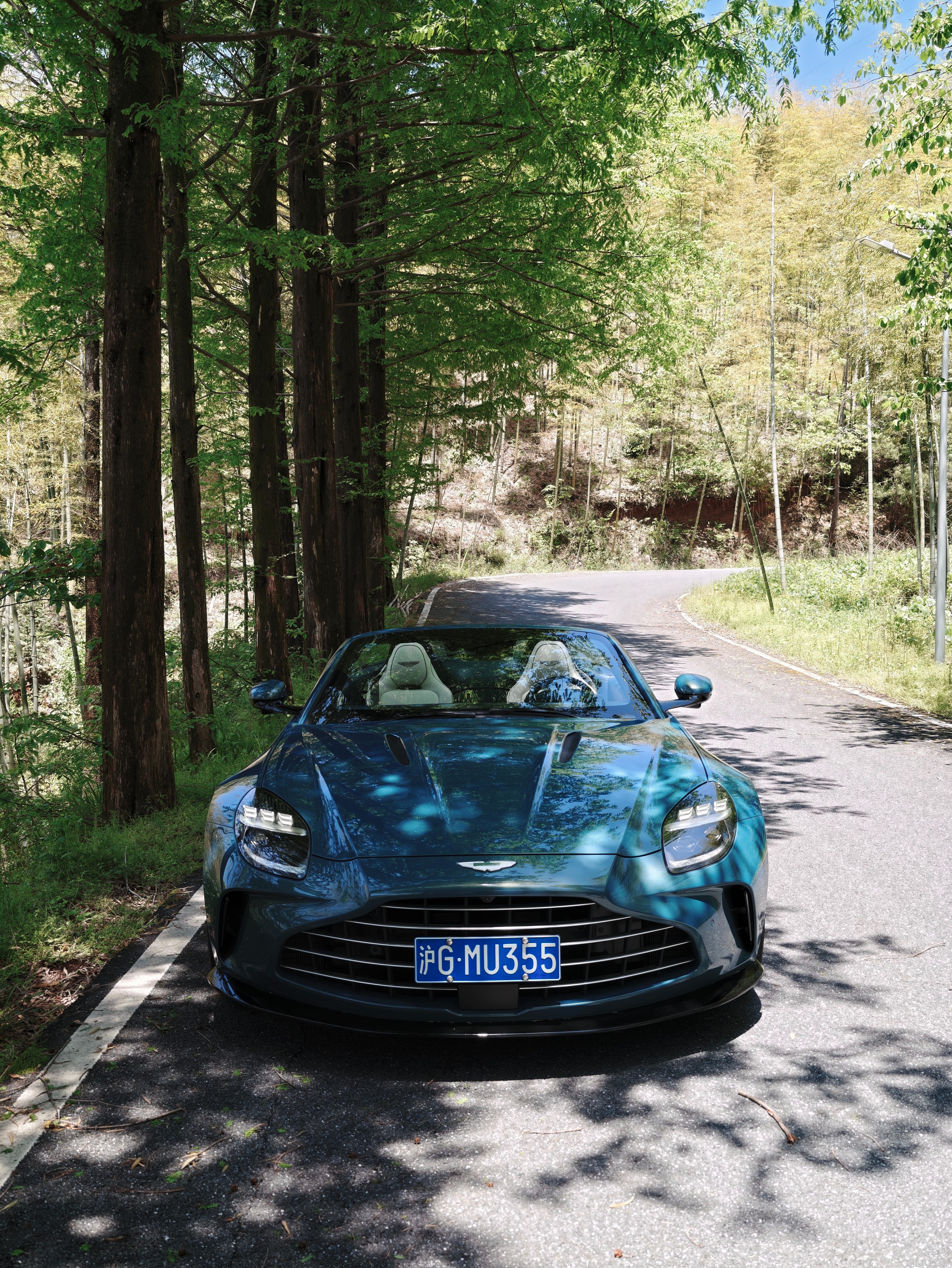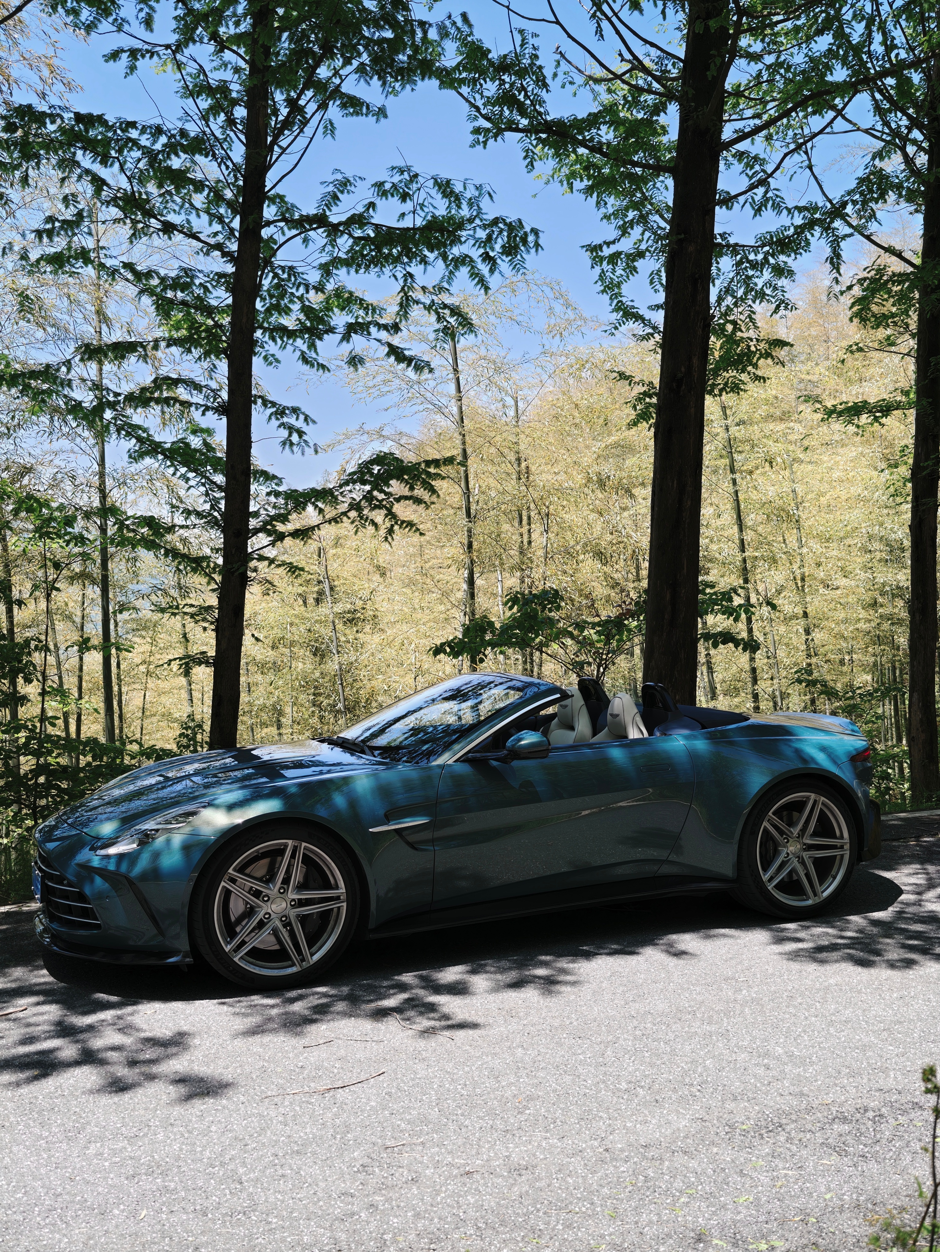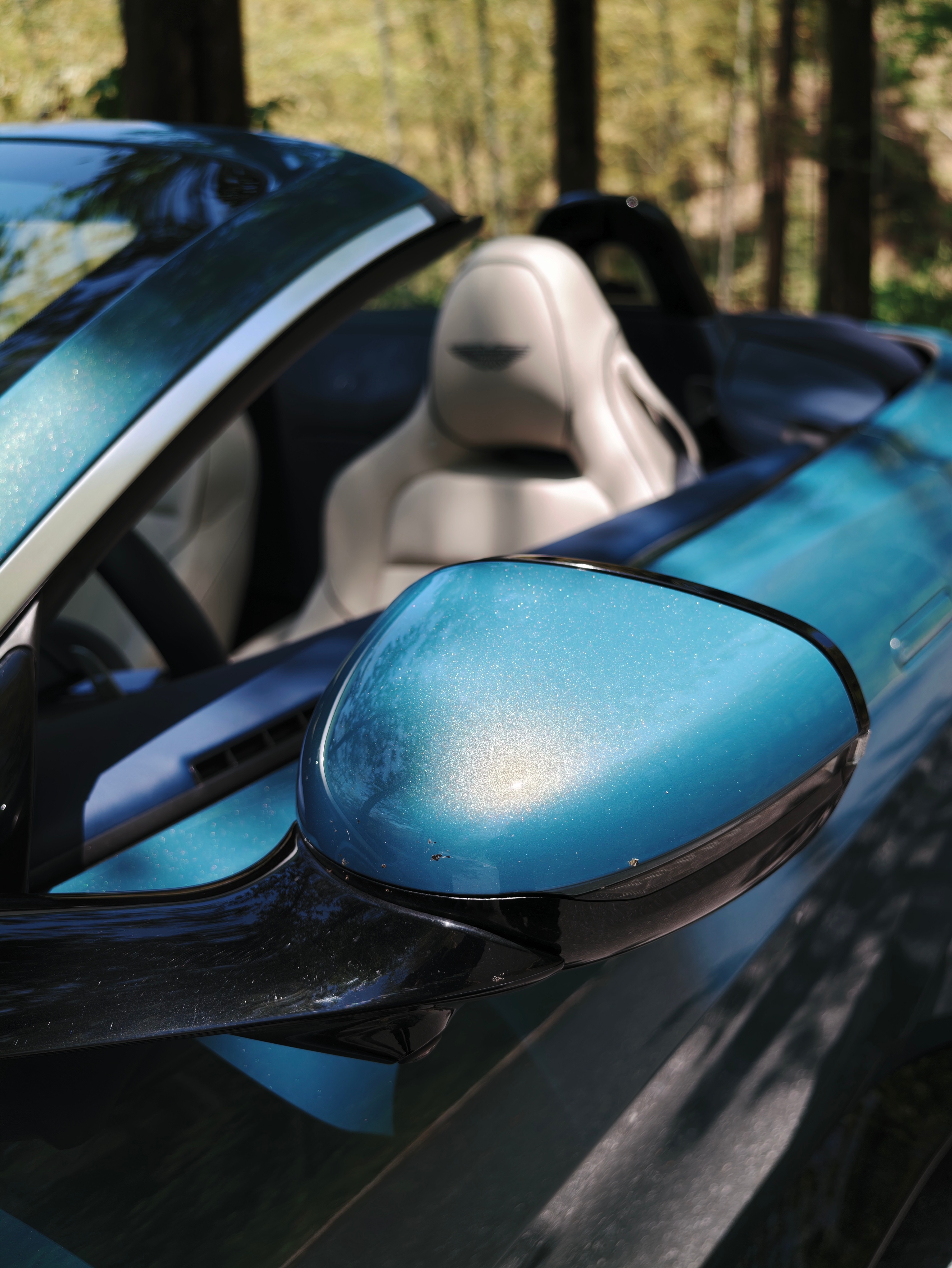 不好意思,真的太好看了,又拍了些图。度假风配色,看了眼配置单,车漆18万,蓝白拼色半苯胺内饰18万,好...好...好 (虹彩宝石蓝车漆的阿斯顿·马丁Vantage敞篷)