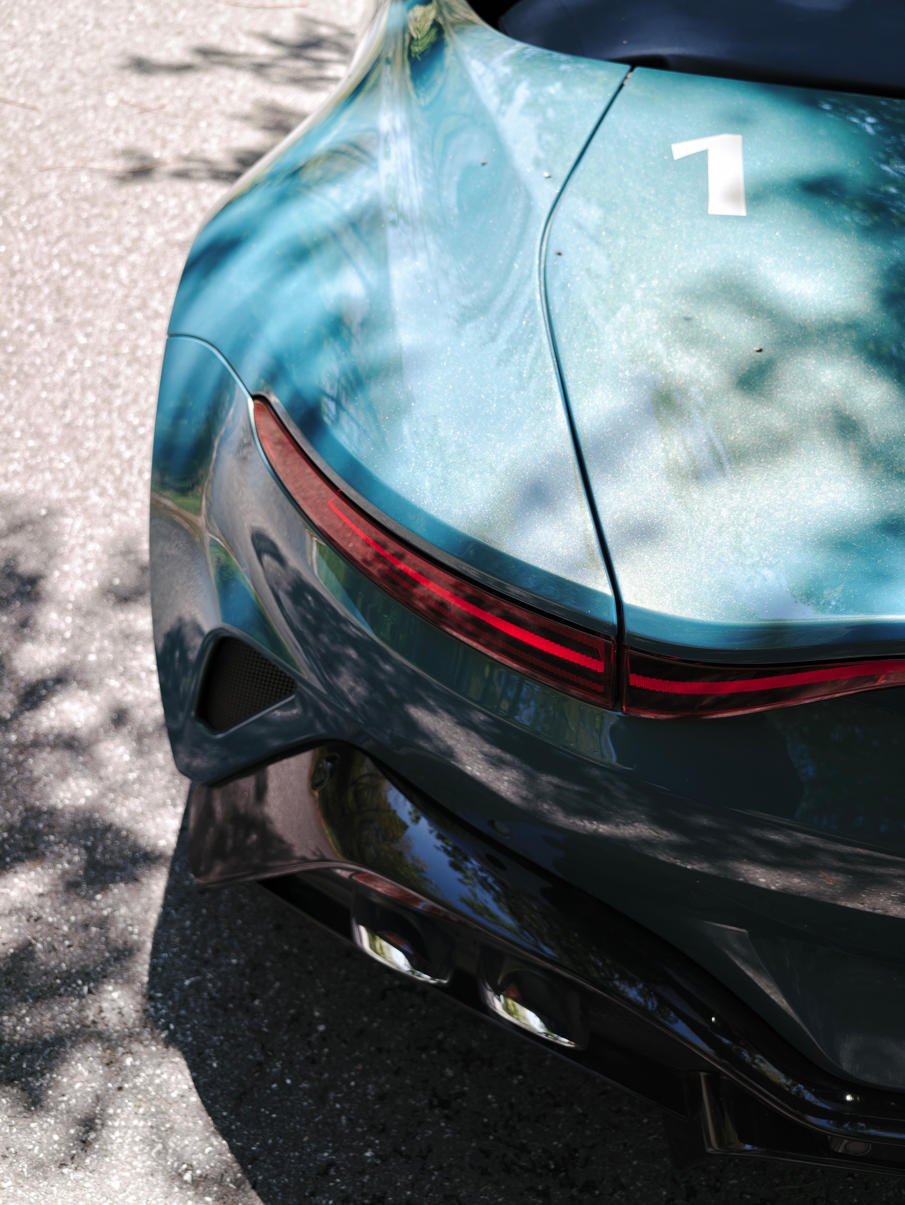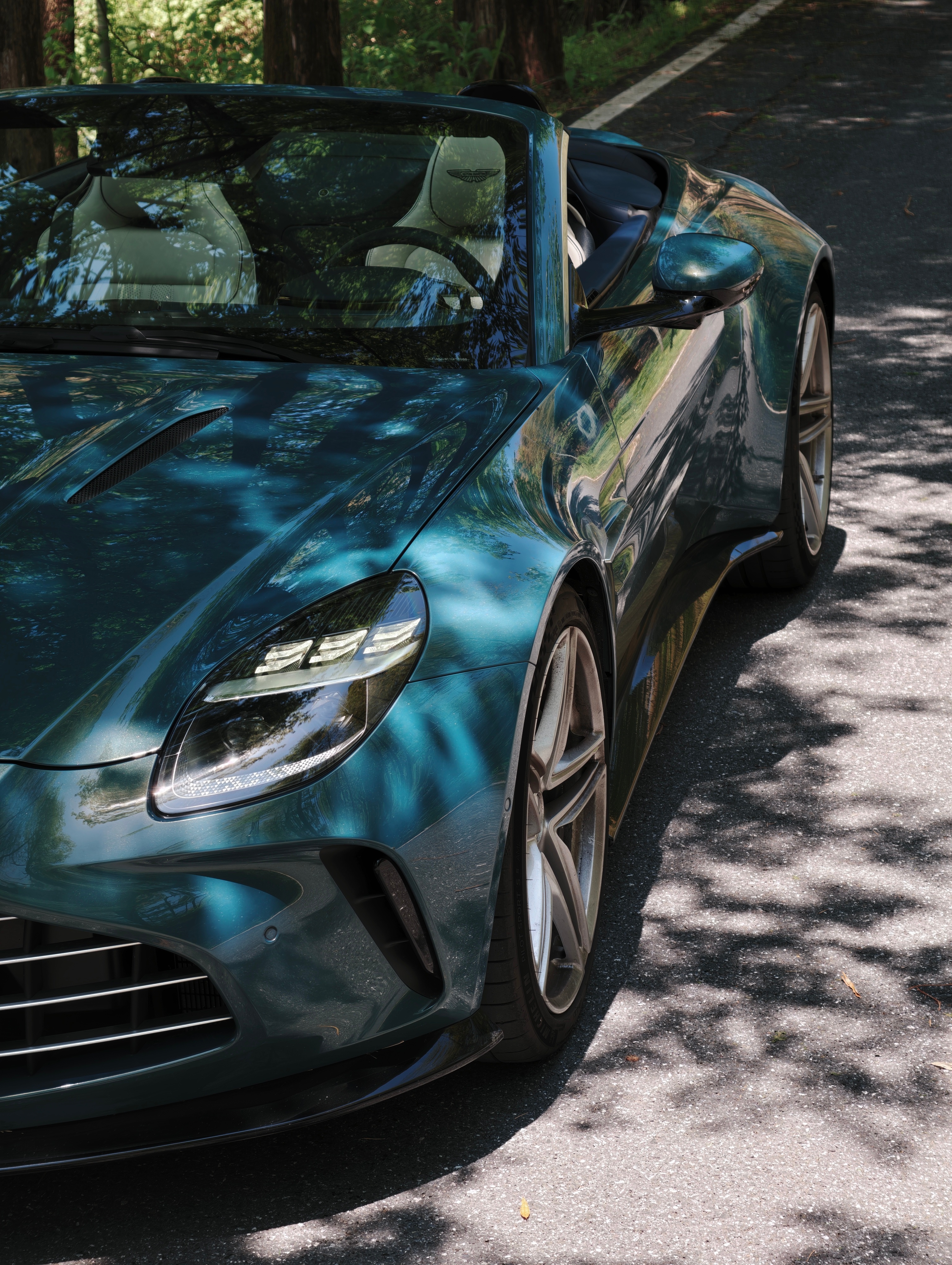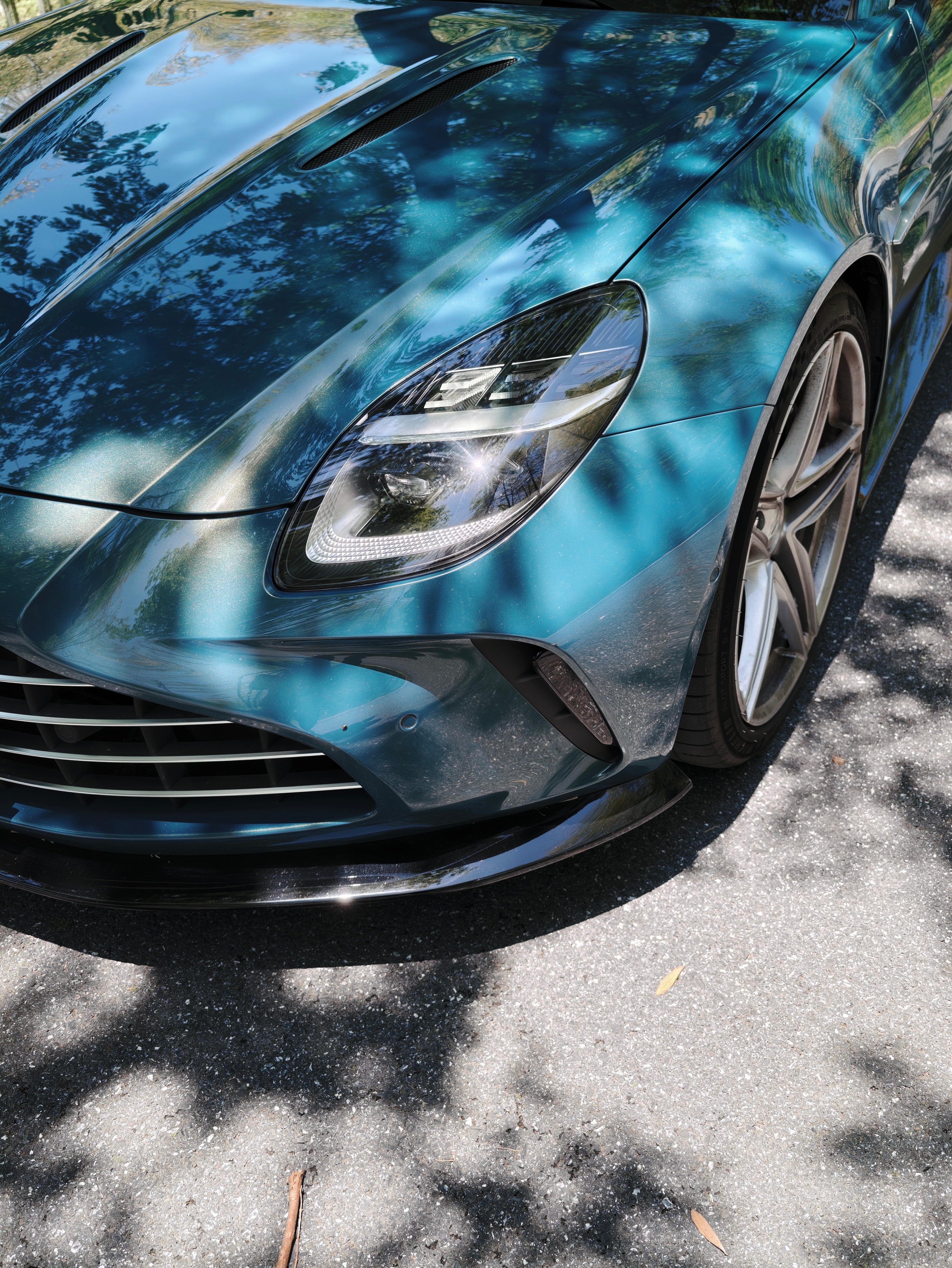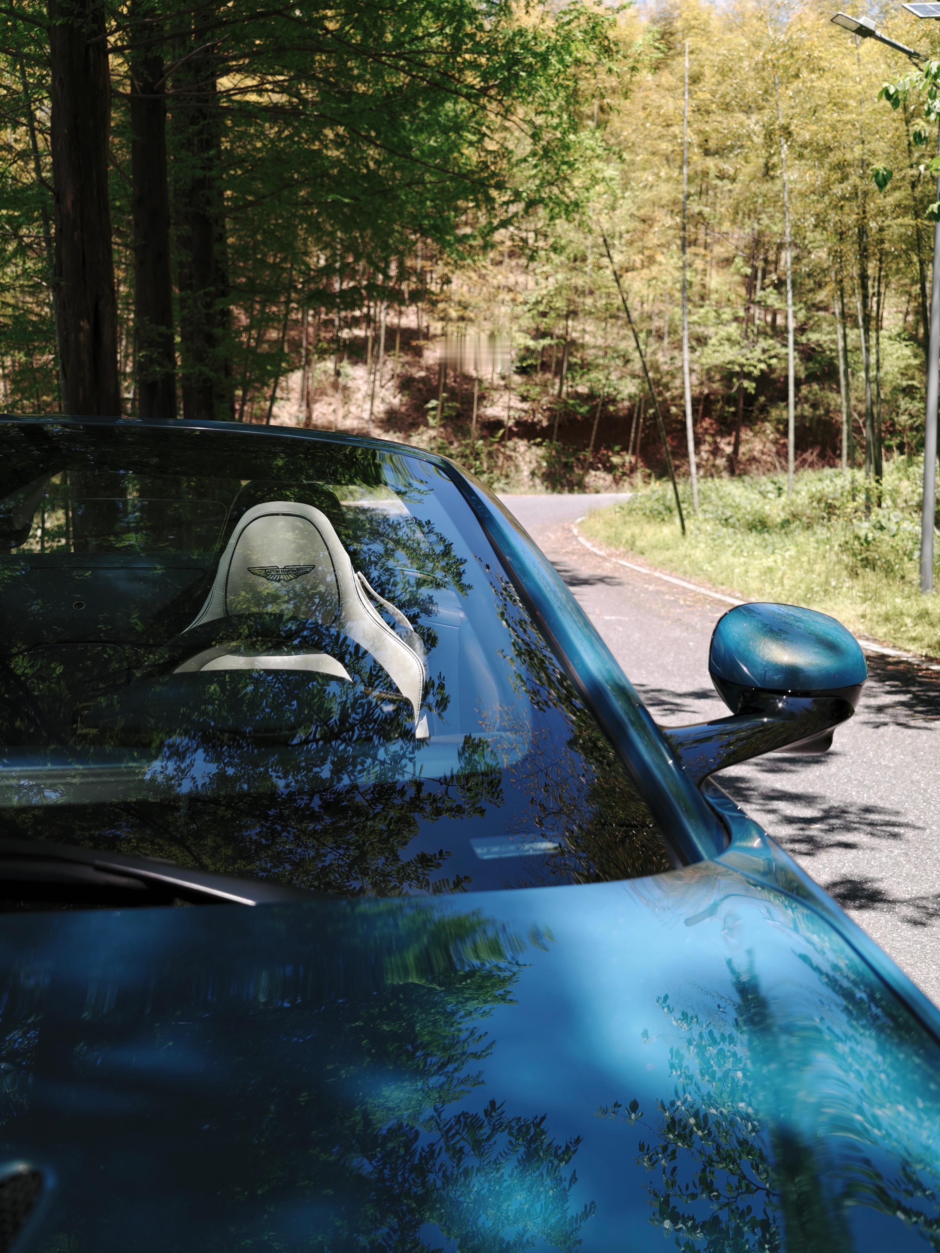 不好意思,真的太好看了,又拍了些图。度假风配色,看了眼配置单,车漆18万,蓝白拼色半苯胺内饰18万,好...好...好 (虹彩宝石蓝车漆的阿斯顿·马丁Vantage敞篷)
