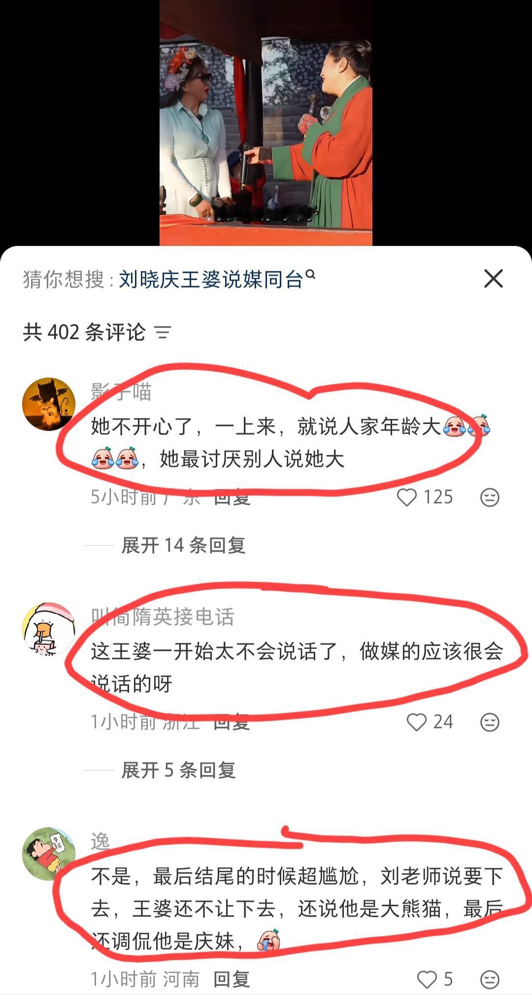 据网友称:后面结束的时候,好像场面也非常尴尬,刘晓庆要下去,王婆还偏拉着他在台上……
