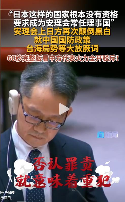 他的发言字字铿锵、句句在理,不仅有力回击了日方的不实言论,更彻底戳穿了日本长期以来伪装的 "和平国家" 面具,以及其谋求安理会常任理事国席位的虚伪本质。