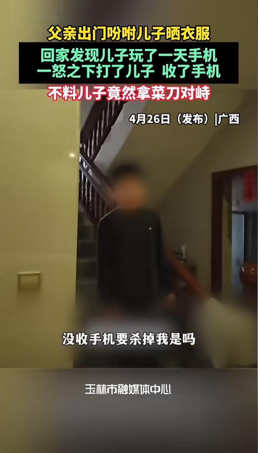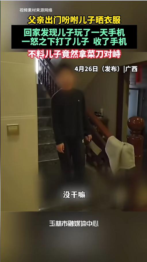 信息来源:《父亲出门吩咐儿子晒衣服,回家发现儿子玩了一天手机,一怒之下打了儿子 收了手机,不料儿子竟然拿菜刀对峙》玉林晚报