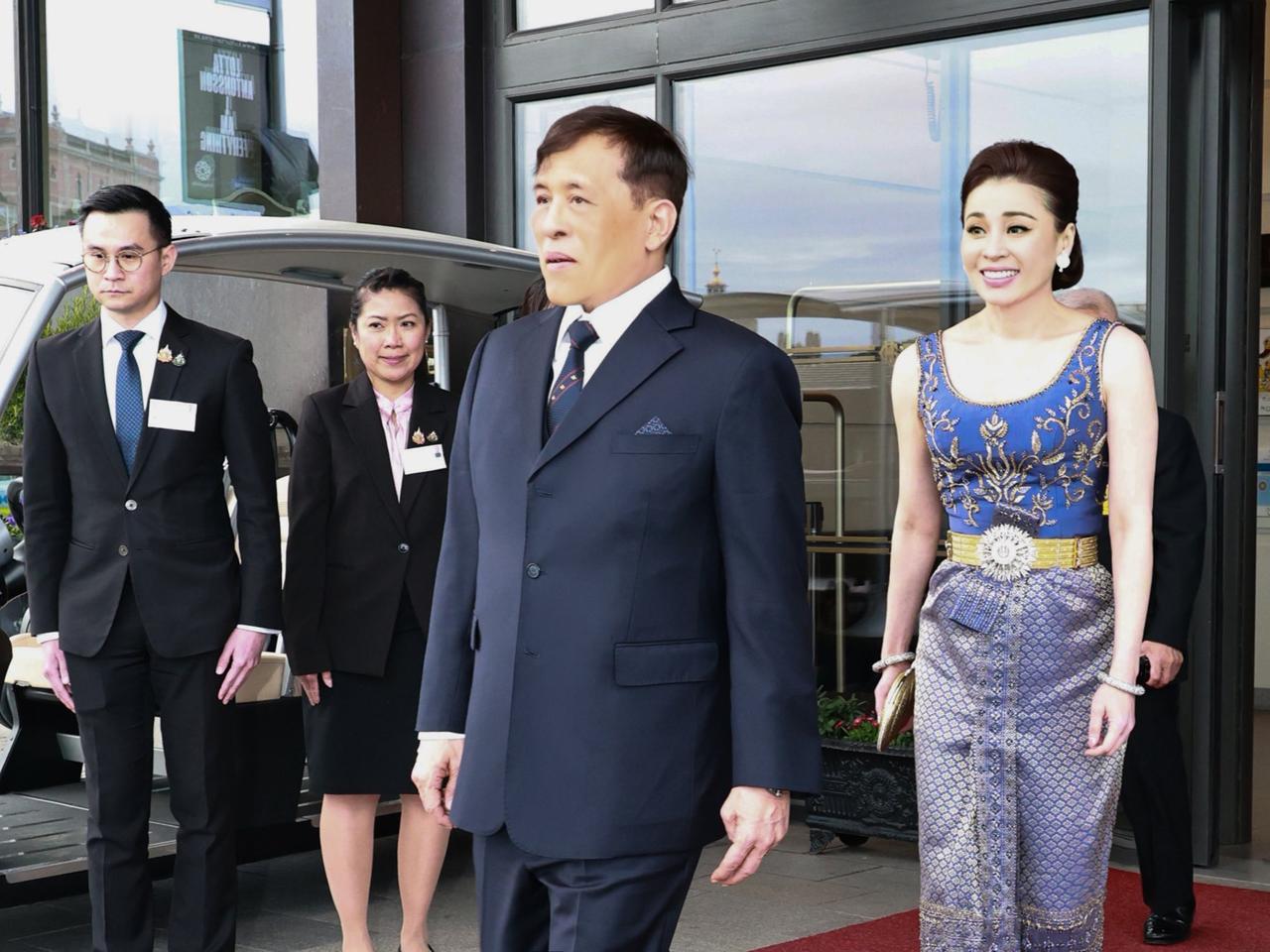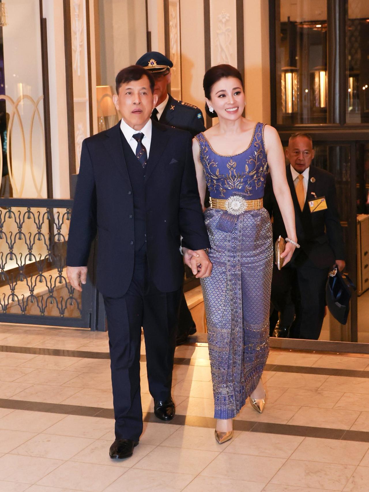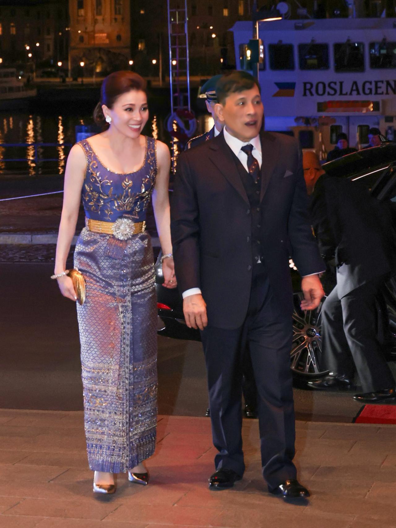2026年4月29日晚,泰国国王玛哈·哇集拉隆功和王后苏提达乘坐皇家汽车,从斯德哥尔摩格兰德酒店官邸前往王宫,参加瑞典国王卡尔十六世·古斯塔夫为庆80岁寿辰举办的正式晚宴与招待会。现场嘉宾云集,有各国元首、政府首脑,还有外国王室成员,晚宴由瑞典国王亲自主持。
