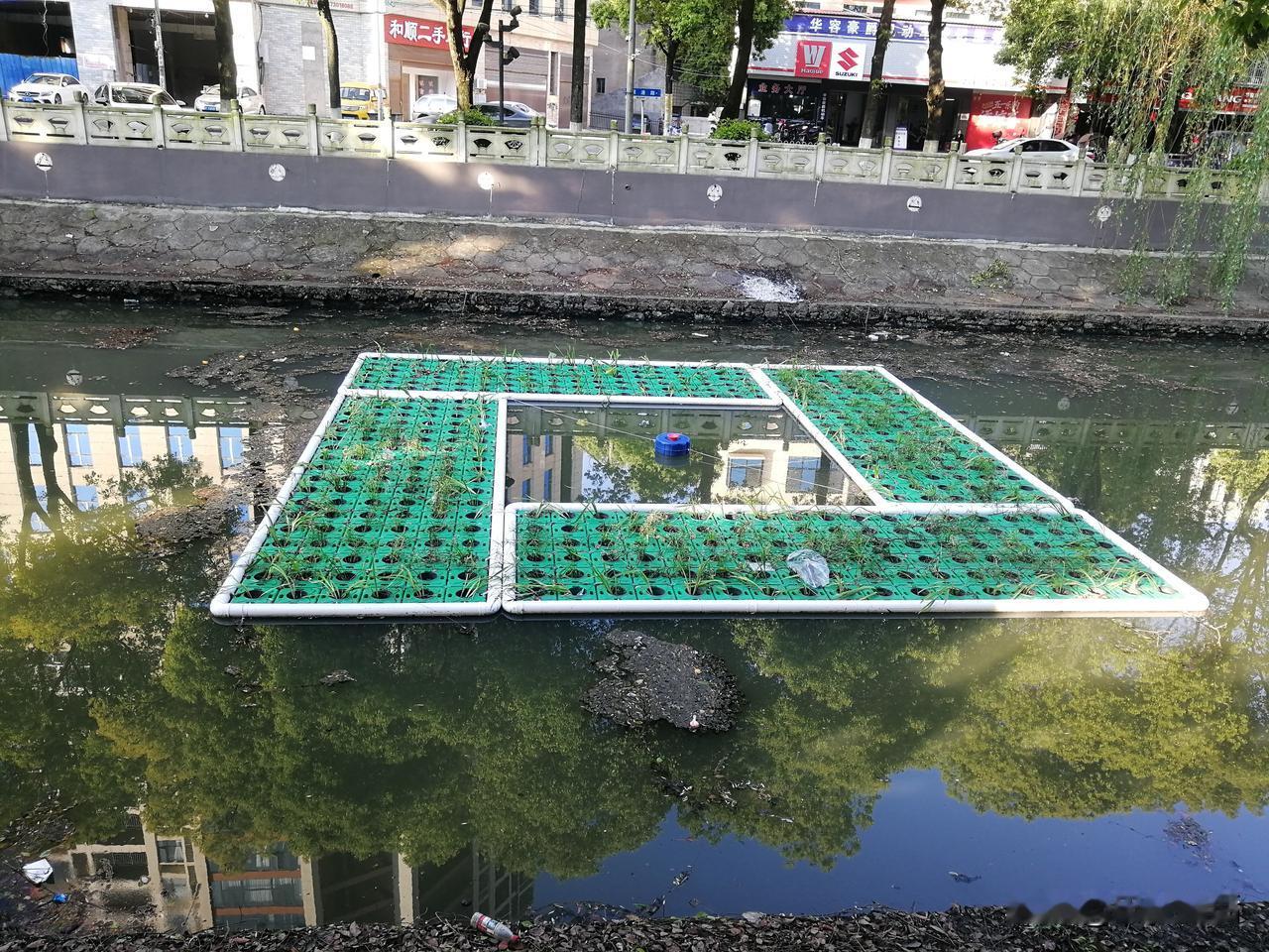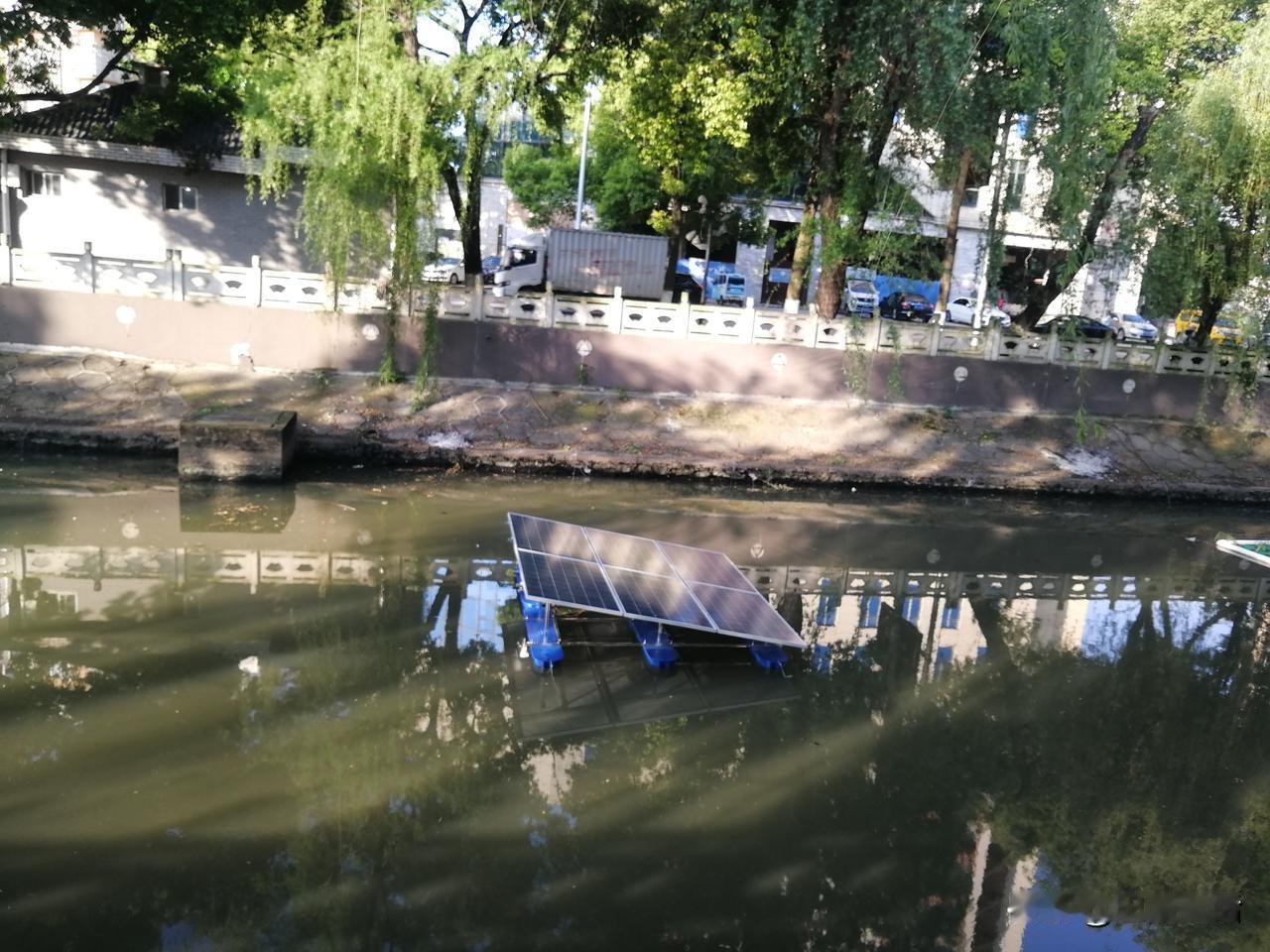 下面图片中的河面上铺是什么,您知道吗? 今天下午路过护城河时,猛然发现河面上铺满了一些奇奇怪怪的东西,其中光伏板我勉强认出来了,但那绿色方格子的东西是什么玩意确实不认识。 万能的友友有认识的吗?它们叫什么名字?有什么作用?
