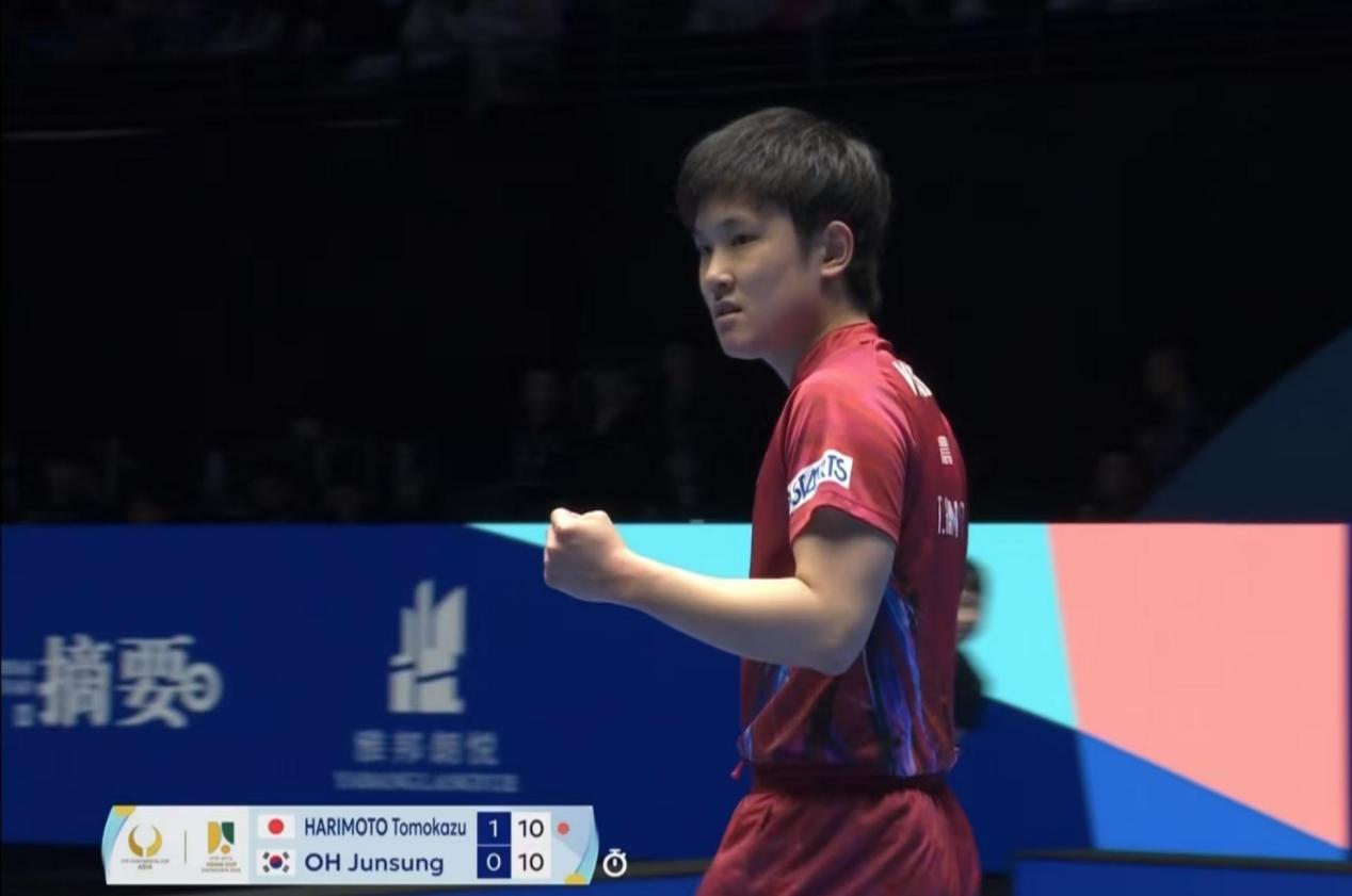 第一局很快结束,张本的脸上露出了一丝笑容,那是自信的微笑,是对自己表现的肯定,也是对接下来比赛的期待,而吴晙诚则眉头紧锁,似乎在思考如何破解张本的攻势,如何在下一局扭转局面。