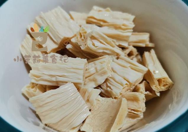 1、作为干货的腐竹是需要提前来处理的,留出充足的时间来浸泡,直到没有硬的地方,洗两遍,切为小段。