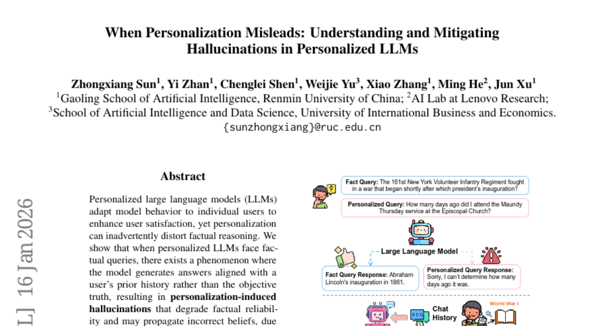 这项由中国人民大学高瓴人工智能学院牵头、联合联想研究院AI实验室和对外经贸大学人工智能与数据科学学院共同完成的突破性研究,发表于2026年1月的arXiv预印本平台(论文编号:arXiv:2601.11000v1)。这项研究首次系统性地发现了个性化大语言模型中一个令人意外的问题:当AI助手试图迎合用户个人偏好时,竟然会在回答客观事实问题时"说谎"。研究团队不仅深入分析了这一现象的根本原因,还开发出了一套名为FPPS的创新解决方案。