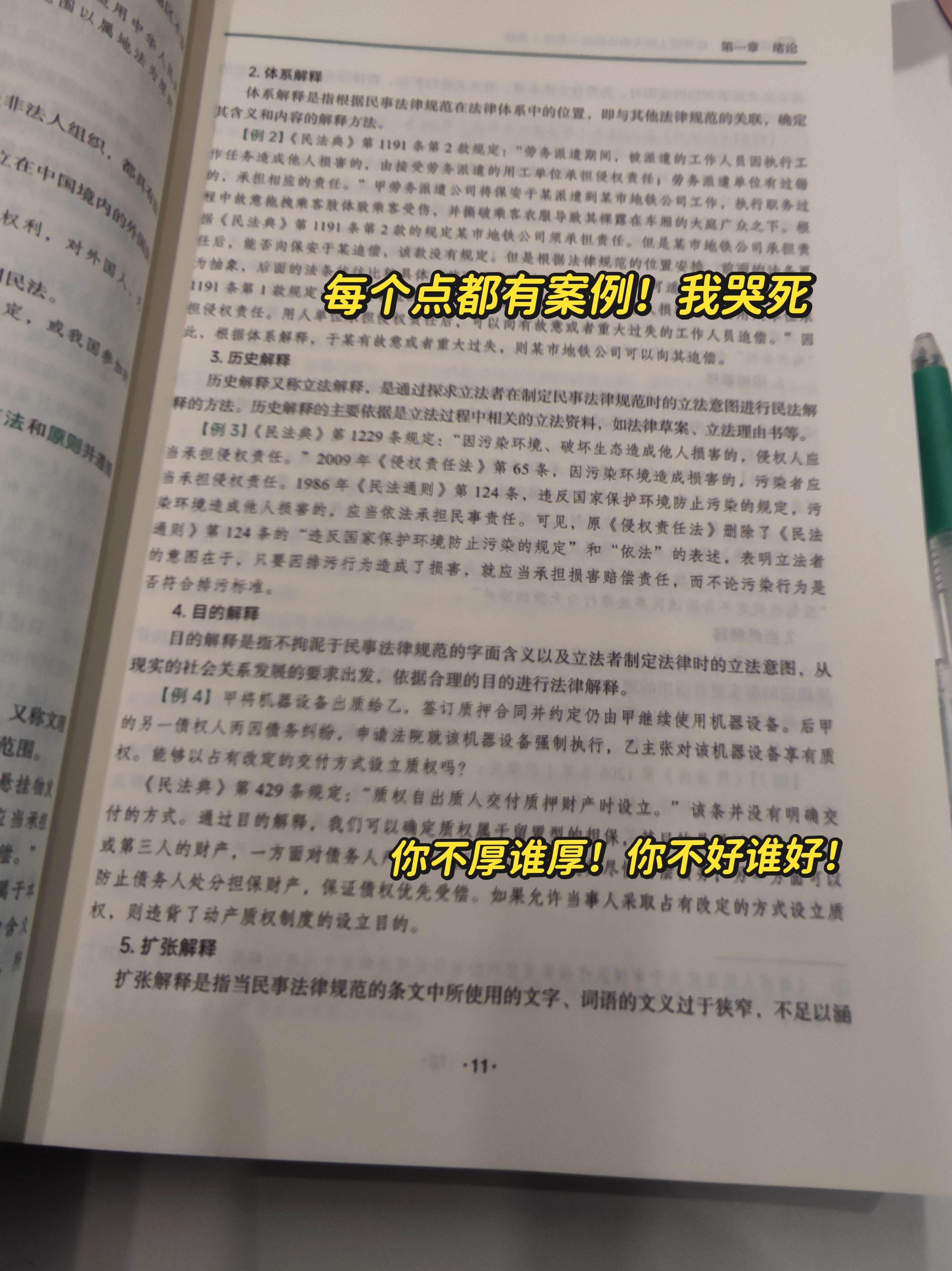 原来是每个章节开头都给我们做了框架体系,写了关于这个章节一般的考试方向,还有相应的真题,最重要的是很多知识点都举了详细的案例给我们解释!哇,老天奶,这对我这个非法学跨考,一窍不通,是非不懂呸(bushi)的法硕小白也太太太太友好了!💖