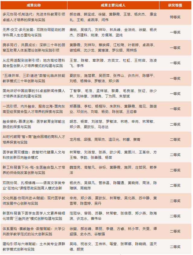 获奖成果聚焦卓越人才培养、双院协同育人、朋辈互助育人、复合型创新人才培养、“四新”人才培养、数智赋能、课程建设等重要方向,充分展现学校本科教育的特色与突出成效。