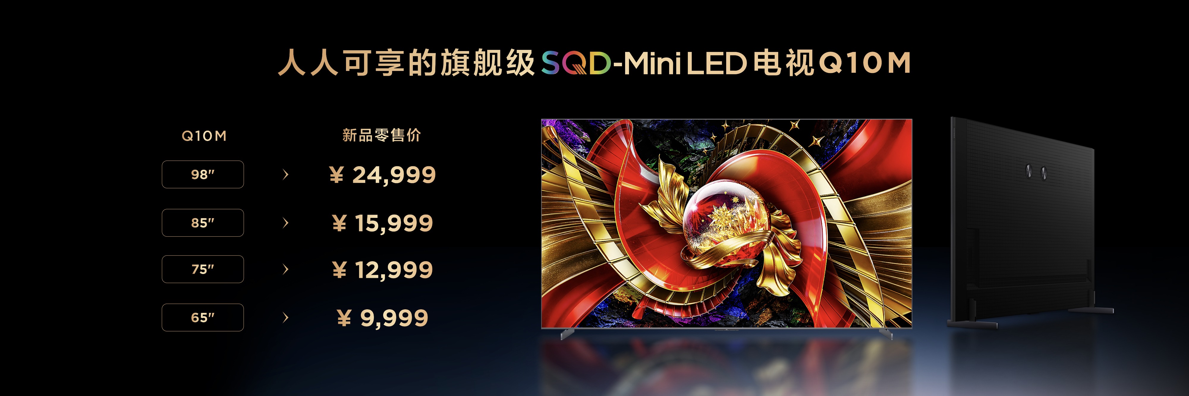 发布会的最后,TCL公布了Q10M Pro与Q10M系列极具震撼力的预售价格:98吋、85吋、75吋、65吋分别为31999元、21999元、16999元、11999元和24999元、15999元、12999元、9999元。两款电视从音画体验到外观均远远超过同级RGB-Mini LED电视。这一价格策略清晰地传递出TCL的战略决心:将SQD-Mini LED这一巅峰显示技术,从“技术制高点”坚决地推向“市场普及点”。