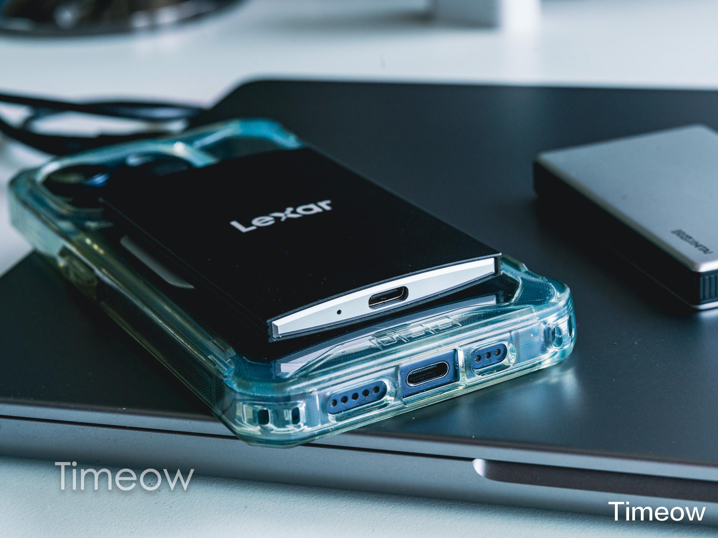 这样不仅单手就能拿着手机和PSSD拍视频,而且硬盘本身的设计可以给手机带来很好的握持感。