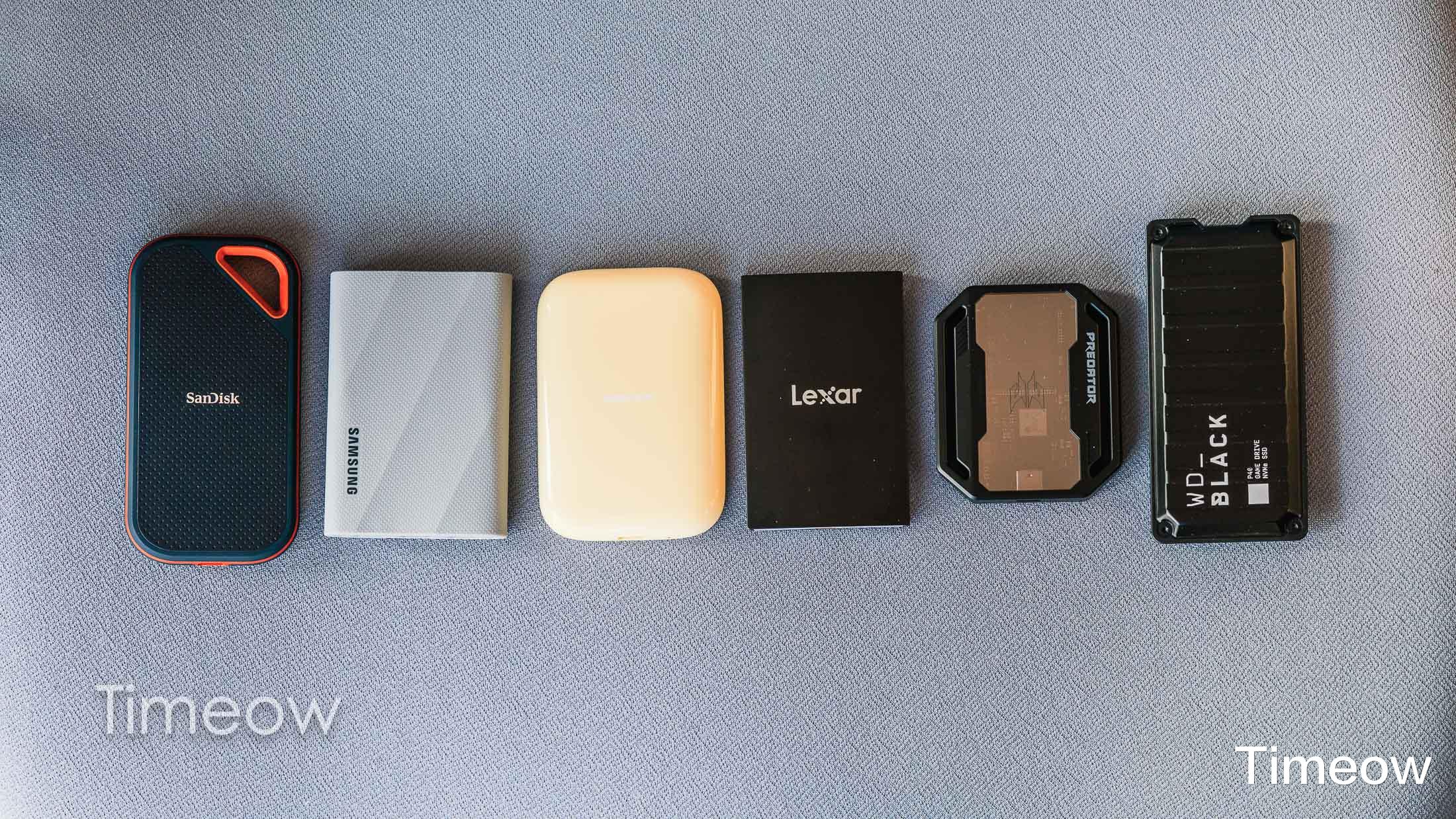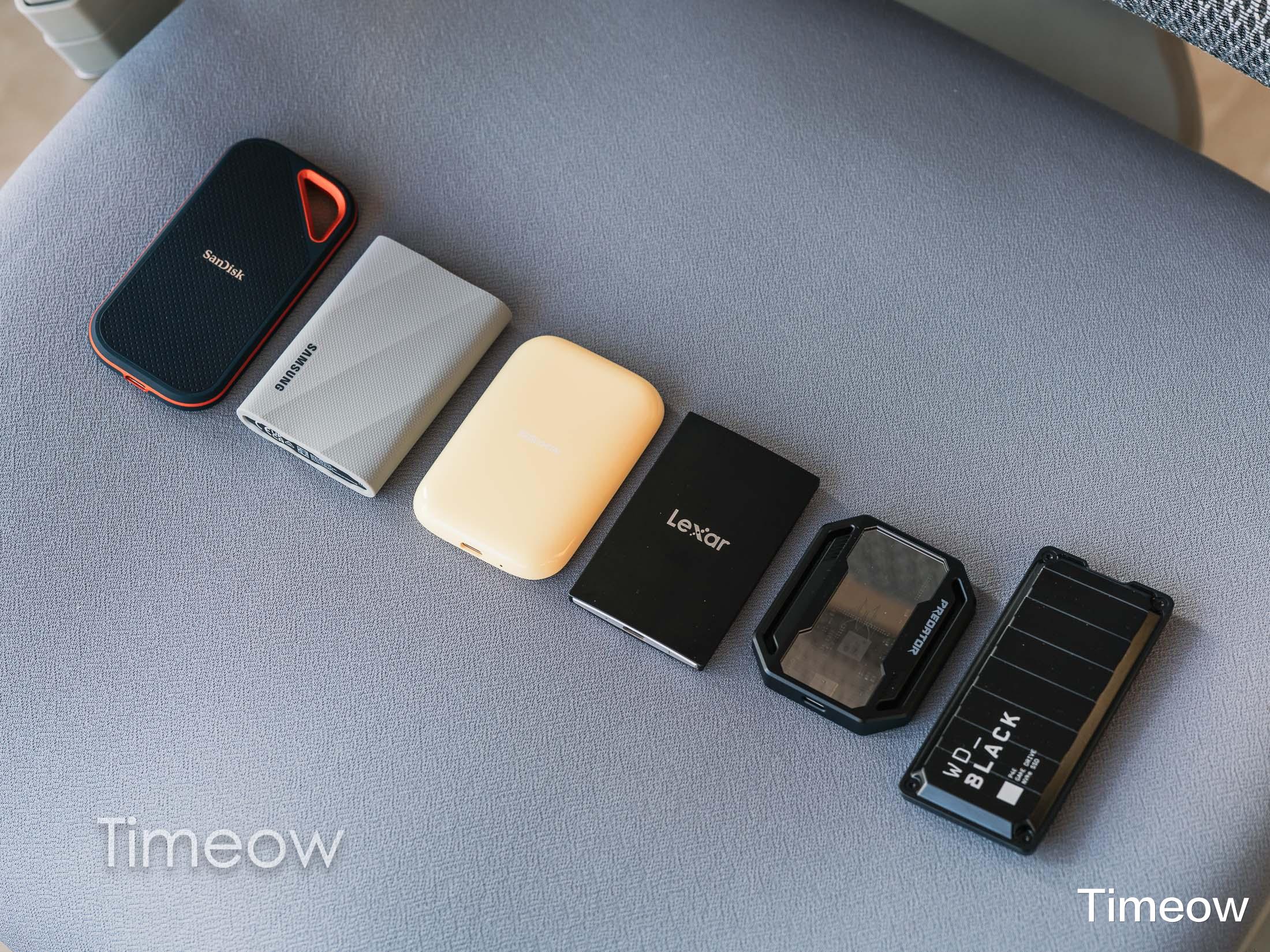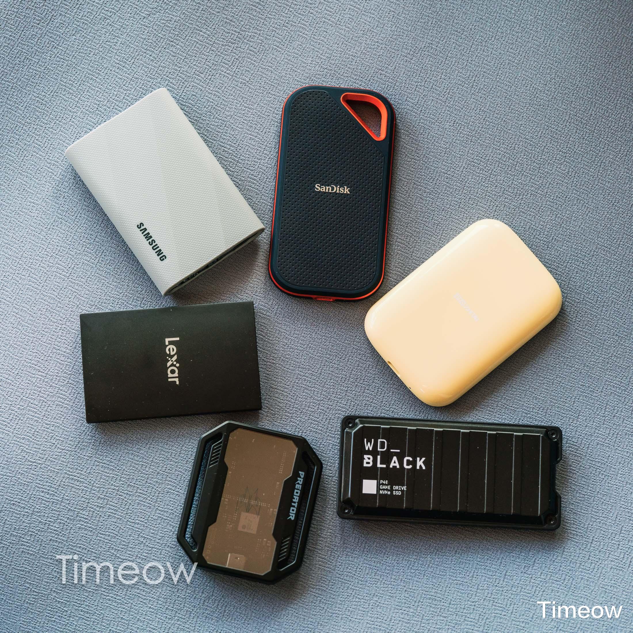 以上分别为闪迪E81至尊超极速(简称闪迪E81)、致态灵·潮流版、三星T9、西部数据P40、宏碁掠夺者GP30、雷克沙SL500。