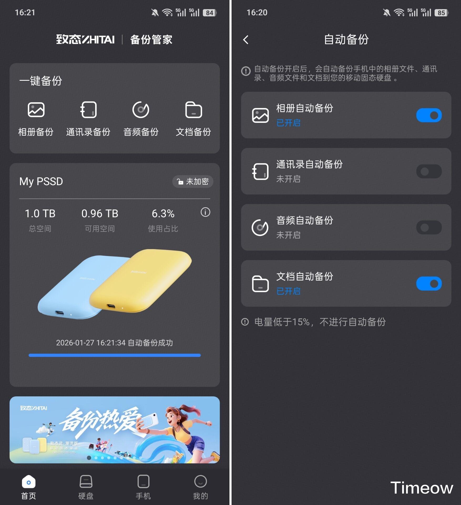 设定好自动备份功能后,我可以飞速的把手机里的相册、通讯录、音频、文档自动备份到致态灵·潮流版上,而且只要插上PSSD、打开app,就可以自动备份新增的内容,即使对于小白来说也能轻松操作,非常靠谱!目前该软件已支持和适配安卓11及以上系统、支持鸿蒙4.0系统相关机型。