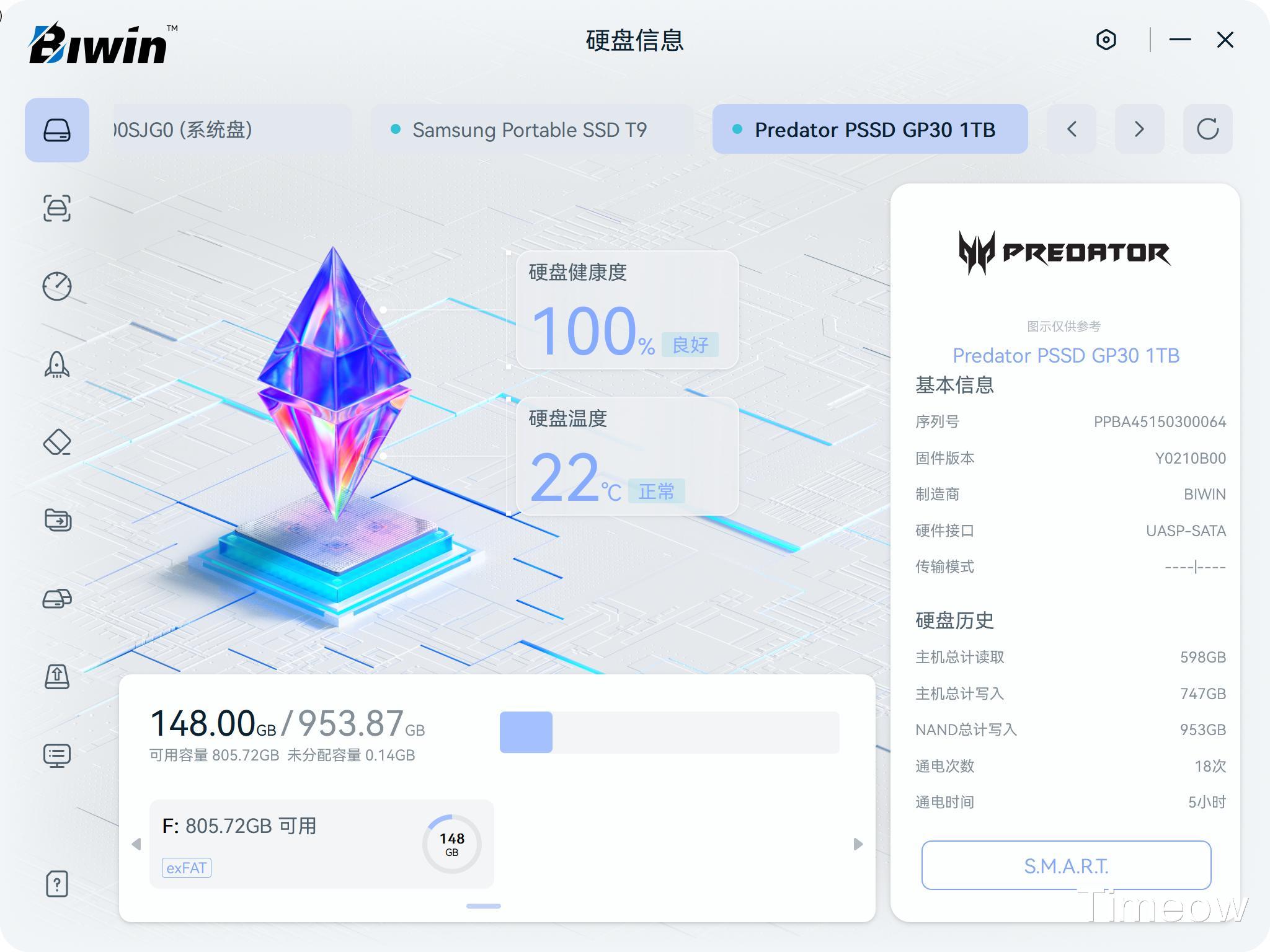 值得一提的是,它可以识别其他品牌的SSD和PSSD。