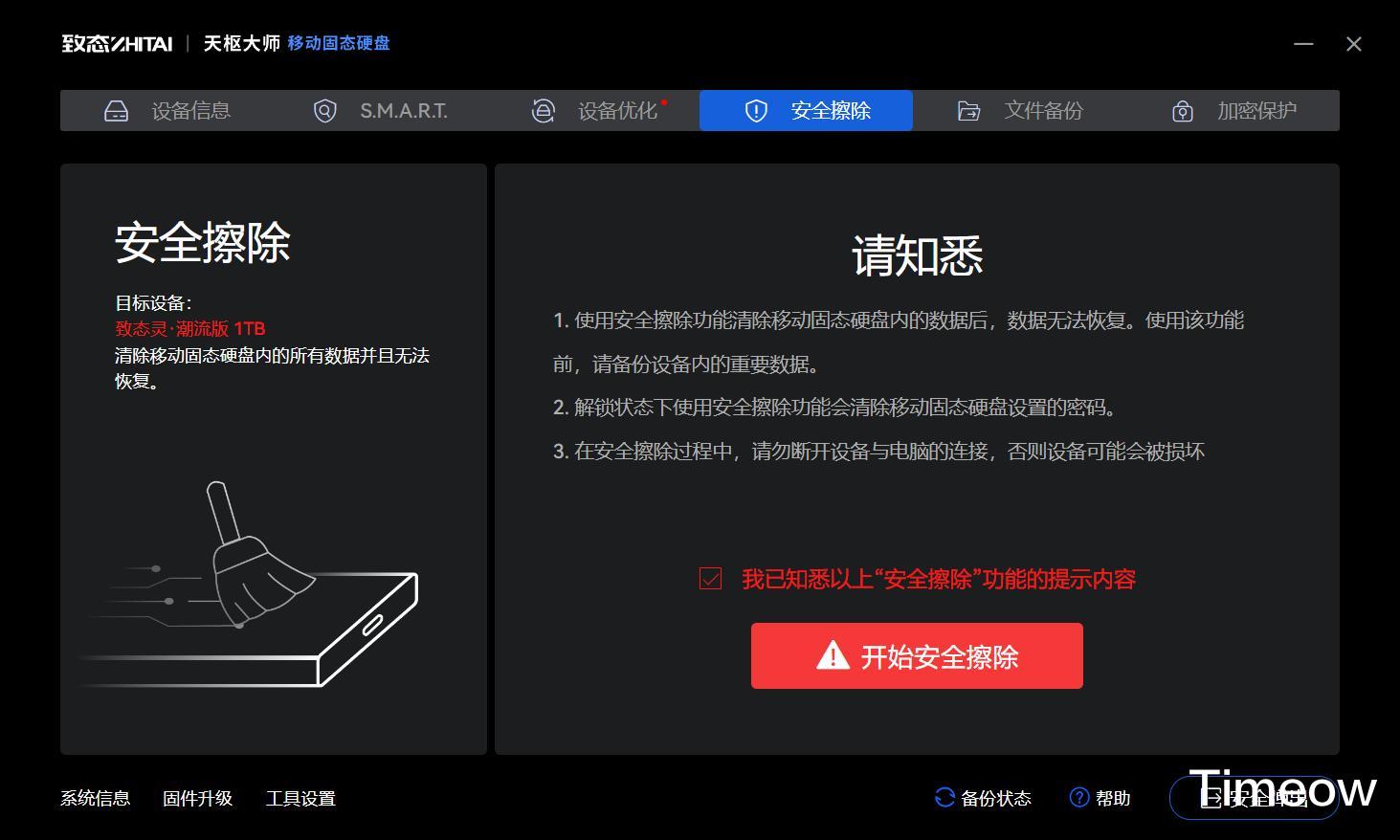 另外,它还可以对数据进行安全擦除功能,在转让或报废前确保数据无法恢复,如果你是拿来办公的话,这个功能还是相当有用的。
