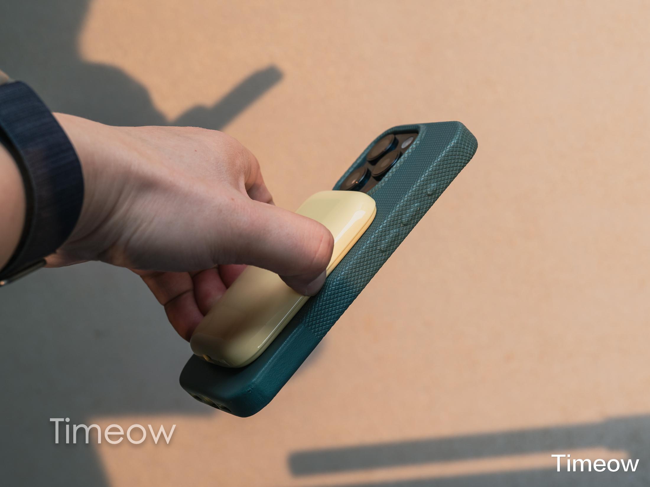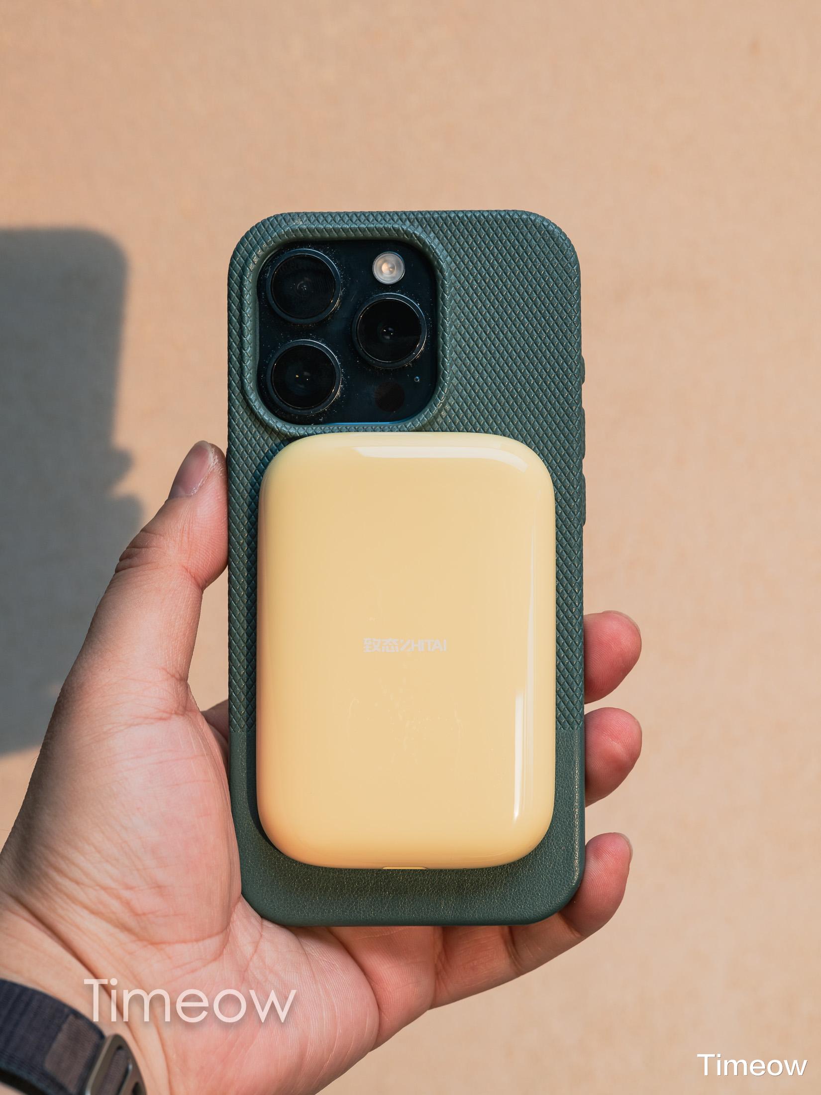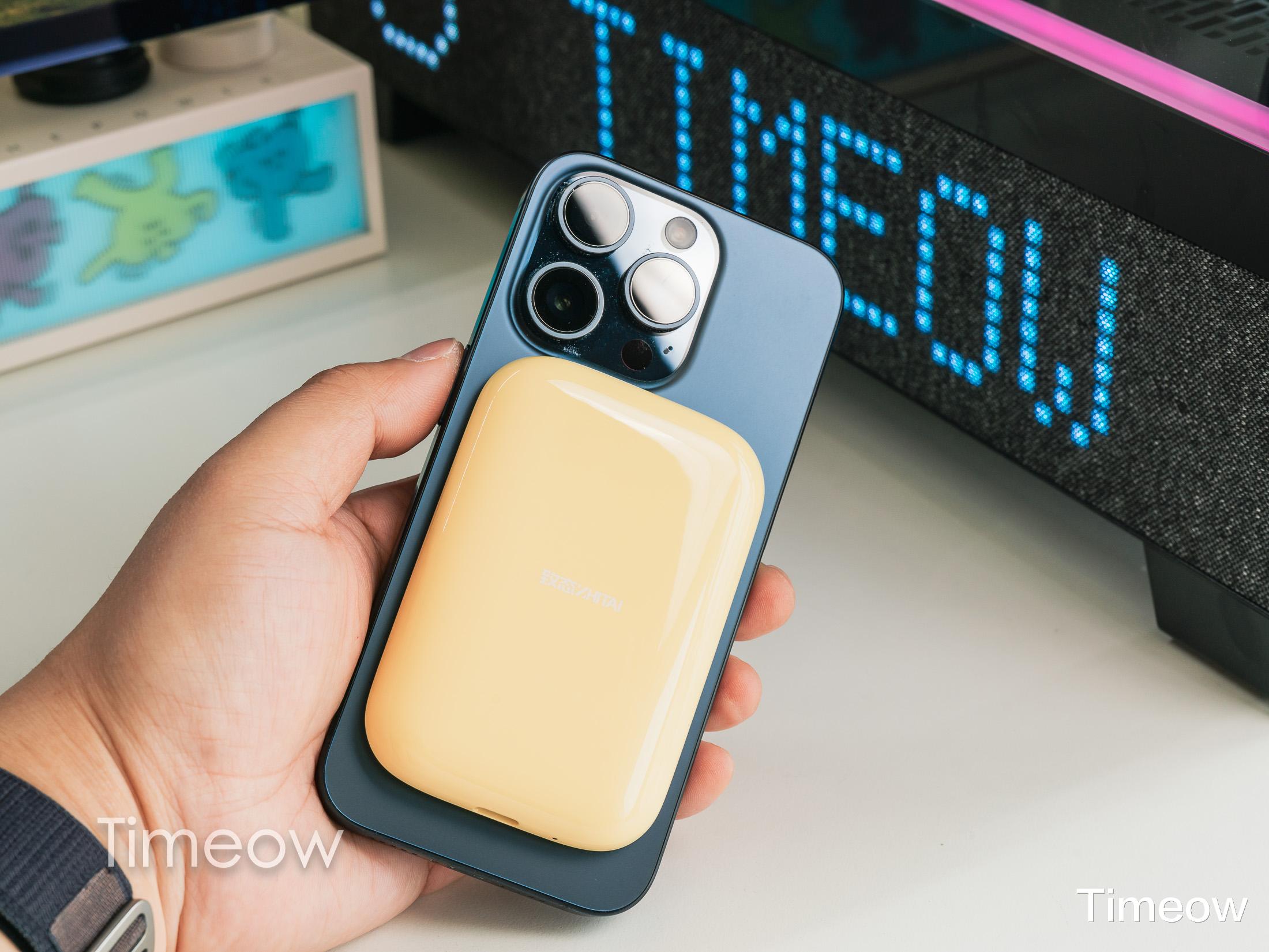 它在背面加入了非常少有的原生磁吸模组,十字定位标可以精准吸附各品牌手机背面磁吸部位: