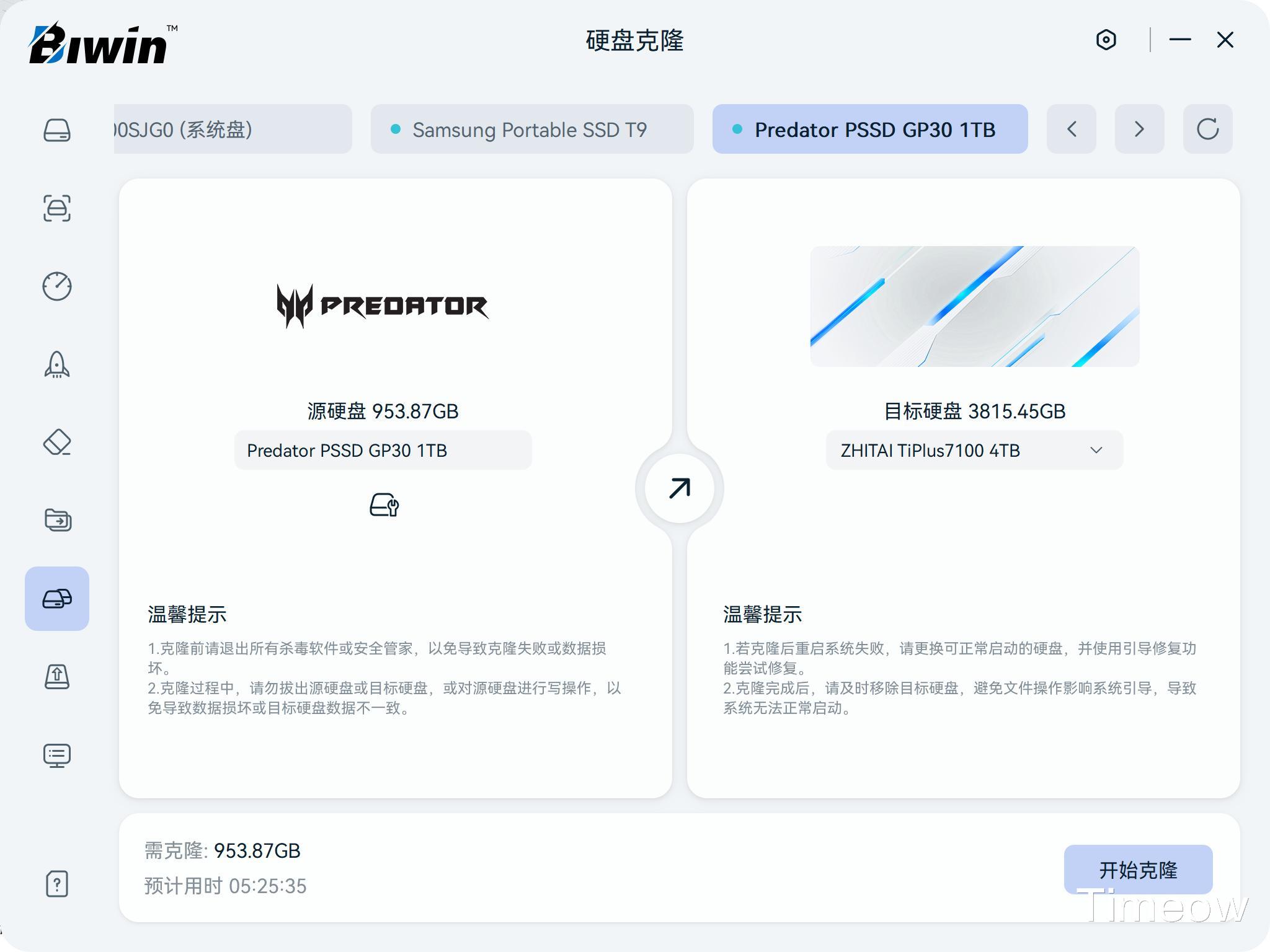 硬盘克隆功能特别适合经常装机或换机的玩家,如果你喜欢折腾的话,这个功能能让你不依赖DiskGenius实现硬盘克隆,好评!