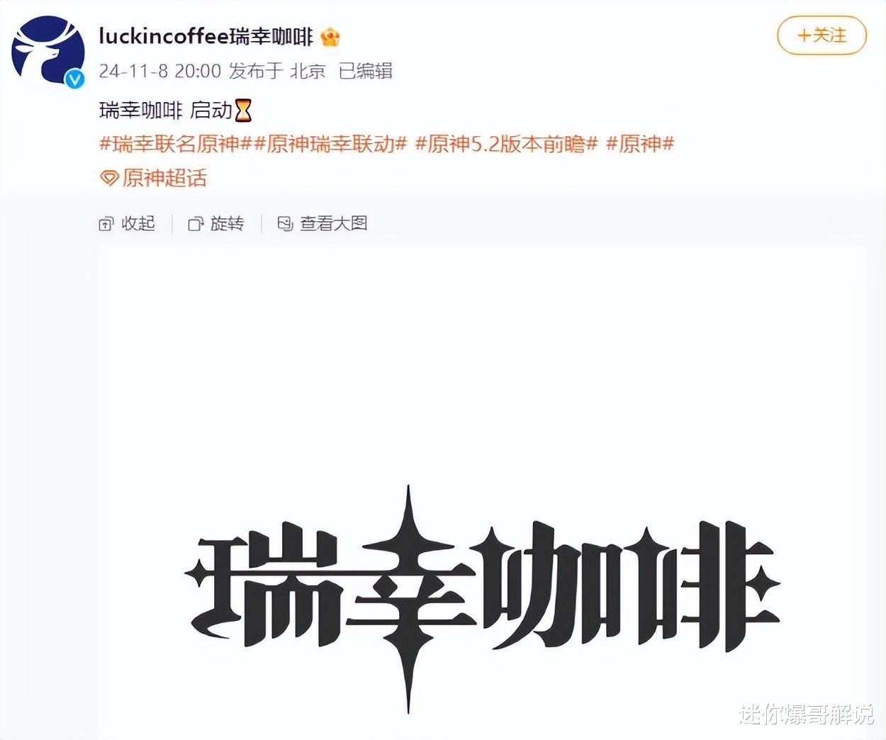 早在5.2版本前瞻直播开启后,瑞幸咖啡就率先在微博里晒出了“瑞幸咖啡,启动”的帖子,LOGO也彻底原神化,一时间引发了大家的激烈讨论。