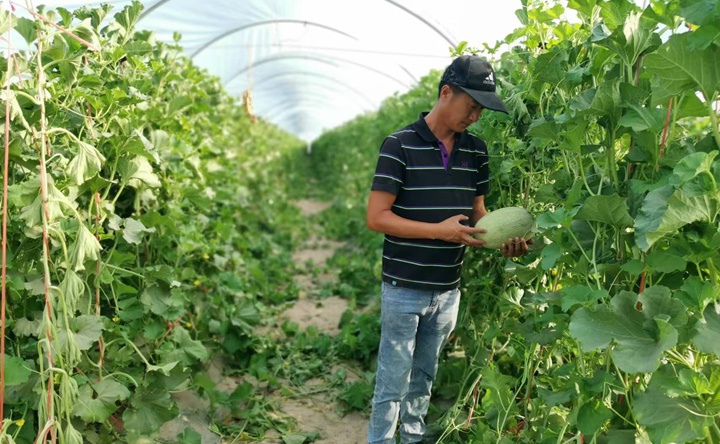 霜降后的清晨,大棚内弥漫着淡淡的甜香。老张轻轻摘下一颗哈密瓜,切开后汁水瞬间涌出,沁人心脾。他递给来访的客人:"尝尝看,这可是咱们沙窝村的宝贝。"客人咬下一口,赞不绝口:"又脆又甜,真是少见的好瓜。"老张笑得合不拢嘴,眼中满是自豪。