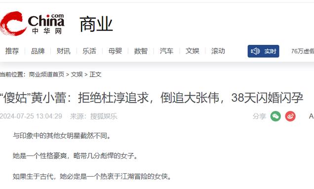 中华网-2024年7月25日-《“傻姑”黄小蕾:拒绝杜淳追求,倒追大张伟,38天闪婚闪孕》