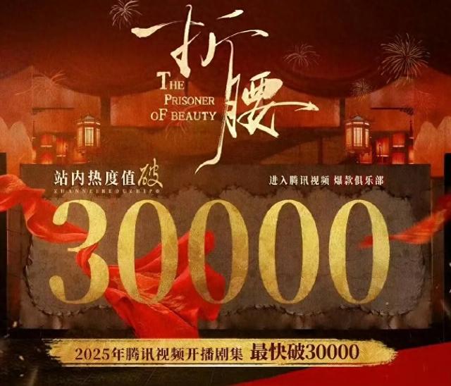 《折腰》播出6天,热度成功破30000,该剧也成了播出平台2025年最快破30000的剧,目前该剧的热度值,排在播出平台热度排行榜的第20名。
